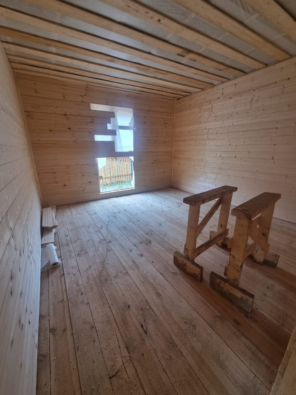 1 этаж: прихожая, бойлерная, санузел с установленной сантехникой, 3 спальни, кухня - гостиная со вторым светом и выходом на террасу; 2 этаж: холл, спальня, санузел.
