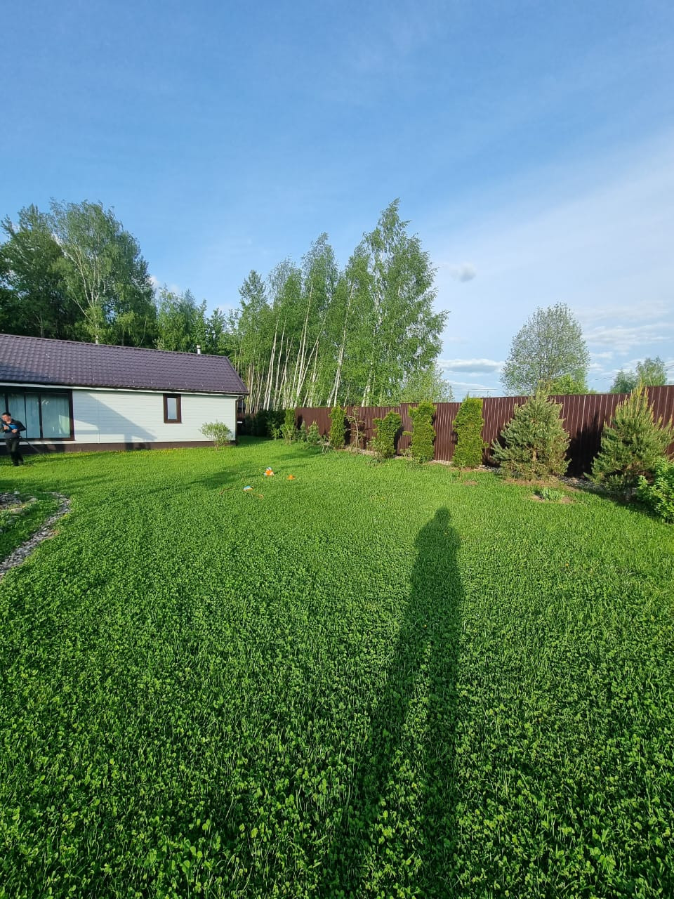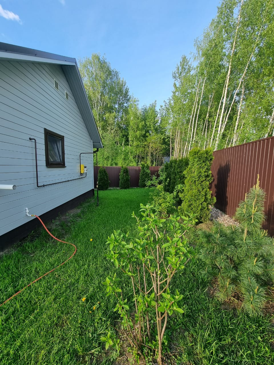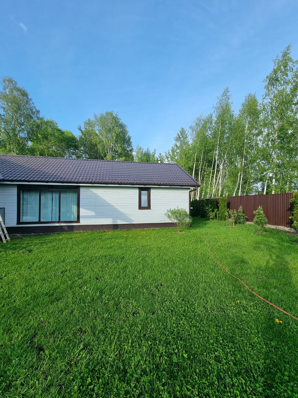 Участок 17 соток, ровный, правильной формы, засеян газоном, ухожен, дринажная система. Огорожен забором профнастил, установлены калитка и откатные ворота. Большая парковка и отмостка вокруг дома уложена асфальтом. Крыша металлочерепица. Установлена водосточная система, снегозадержатели.