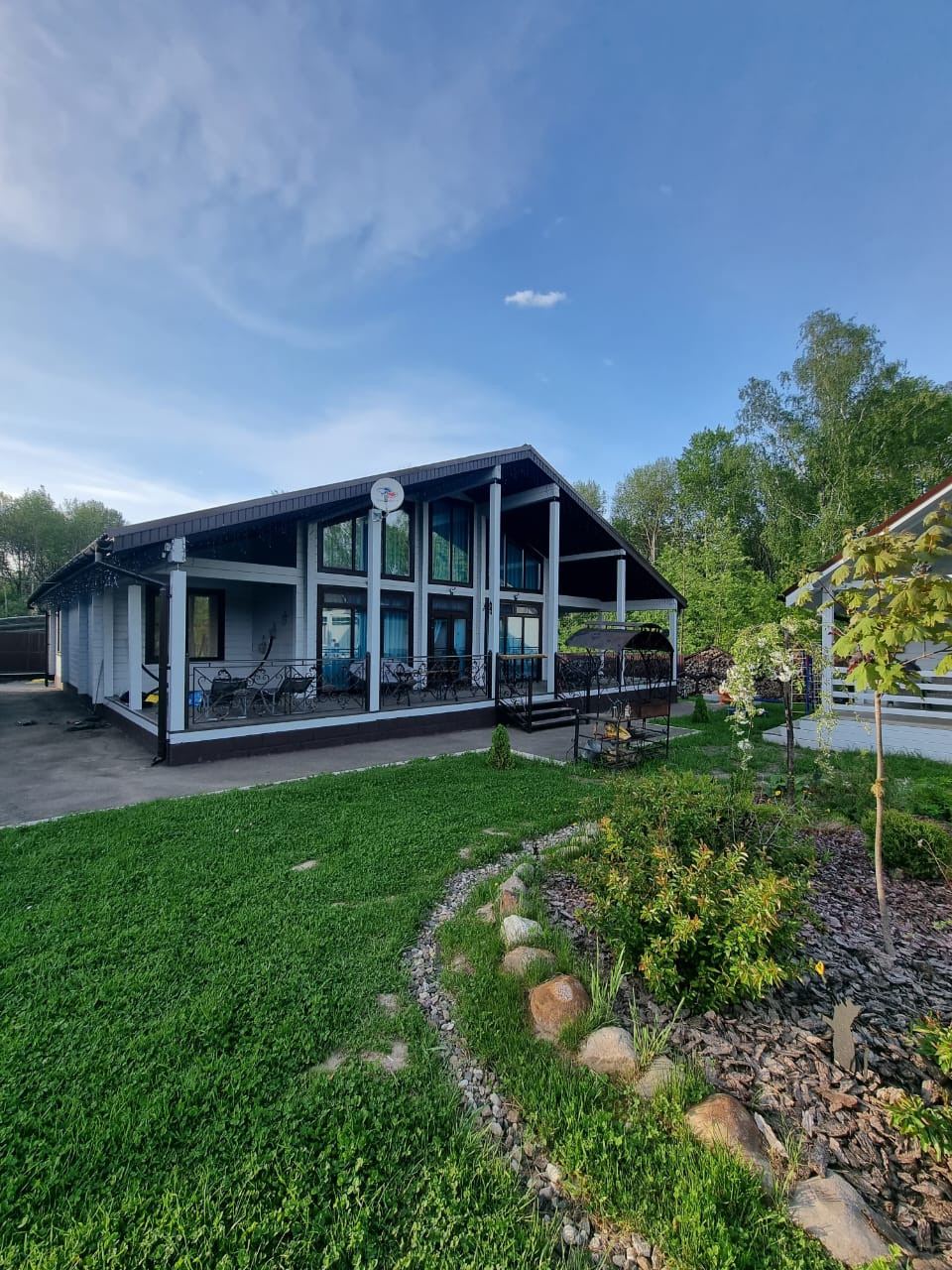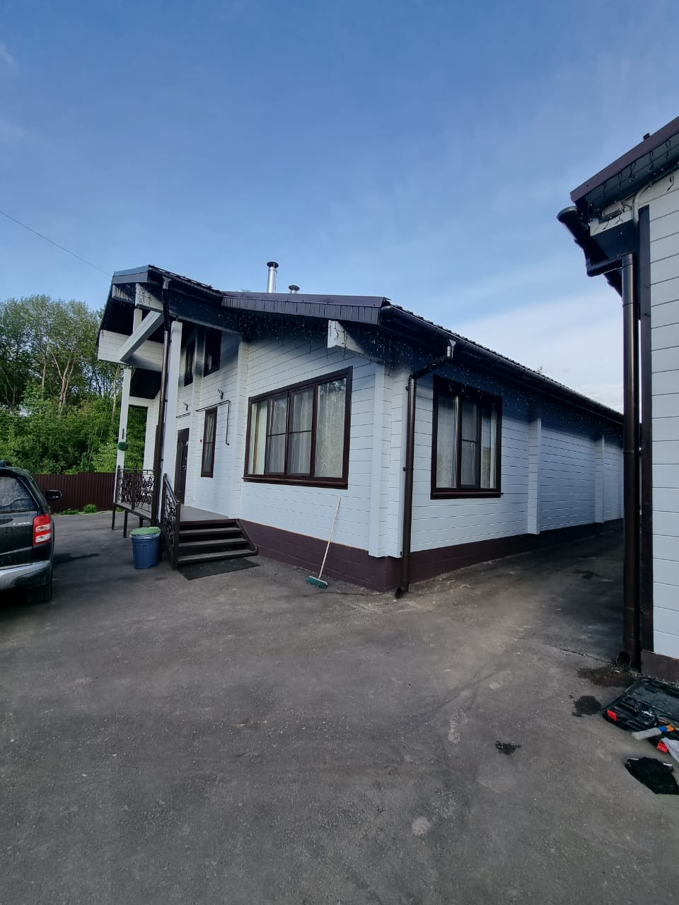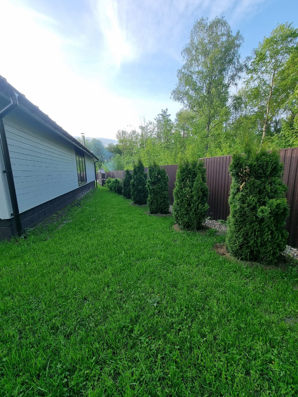 Участок 17 соток, ровный, правильной формы, засеян газоном, ухожен, дринажная система. Огорожен забором профнастил, установлены калитка и откатные ворота. Большая парковка и отмостка вокруг дома уложена асфальтом. Крыша металлочерепица. Установлена водосточная система, снегозадержатели.