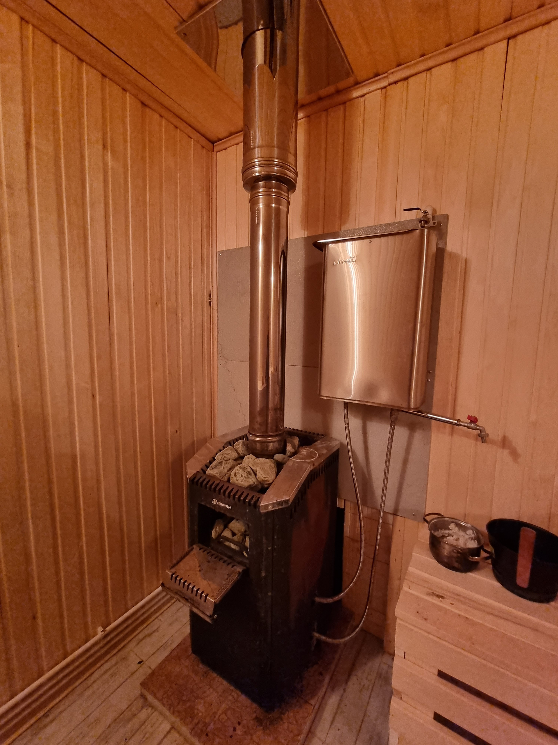 Баня 104 кв.м. Комната отдыха с кирпичной мангальной, установлен бассейн с подогревом и системой водоочистки 2,80 на 5,5 глубиной 1,5 метра, парная, санузел, бойлерная.