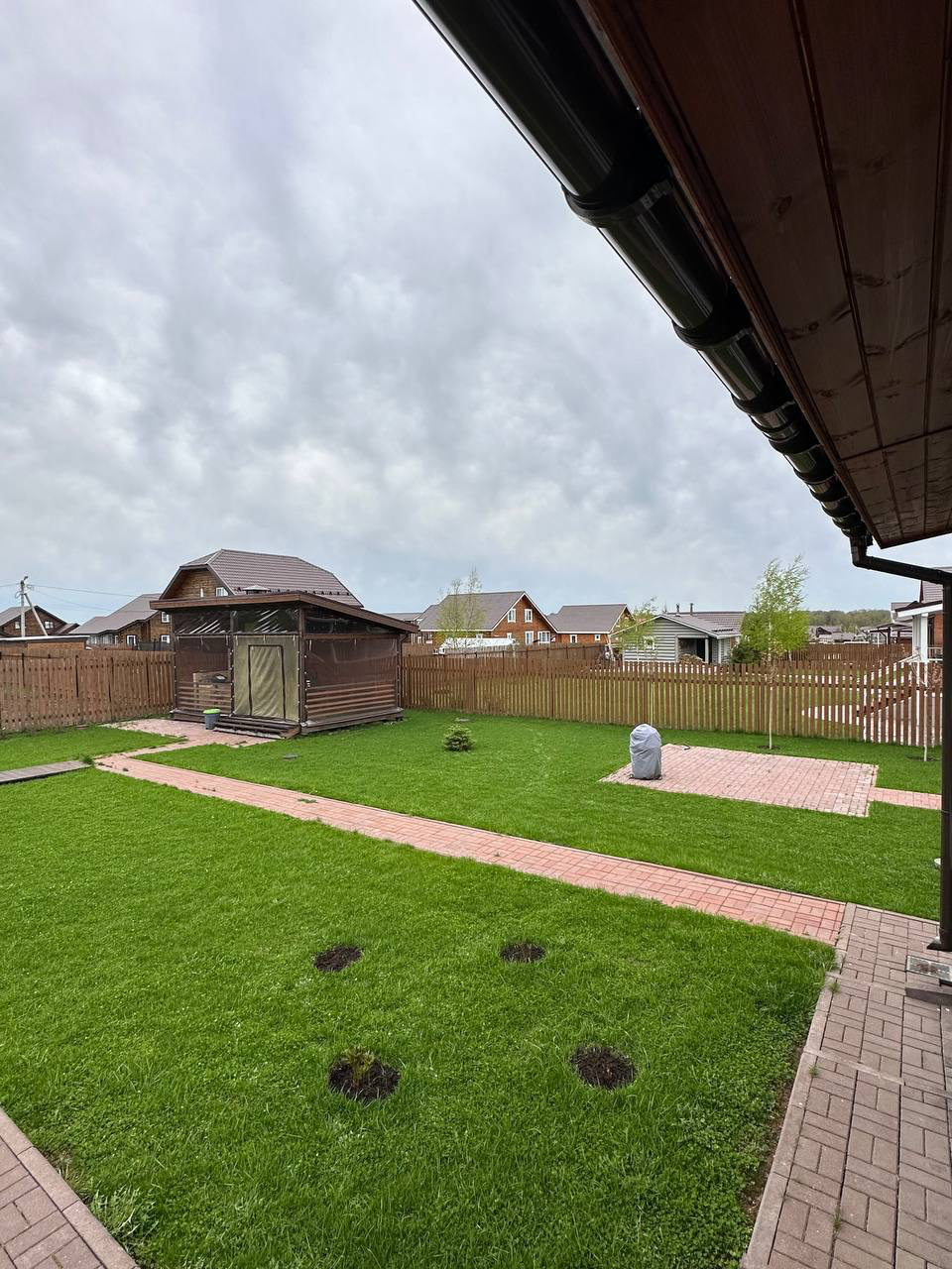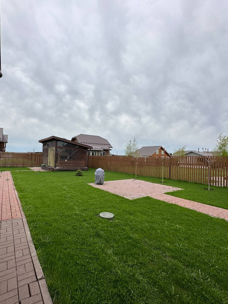 Ухоженный участок 15 соток.  Есть бассейн и беседка с полноценной печкой. Посажены плодовые кусты, живая изгородь  43 куста , 2 вишни, 3 клена, цветы и сосны декоративные. Есть дровник, своя детская площадка на участке.  Идеальный 4 летний газон.
