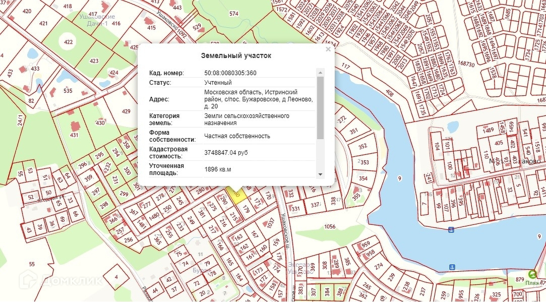 Участок расположен в КП «Экопарк Ушаково», одном из самых экологически чистых и живописных районов Московской области. В КП охрана и единая сервисная служба. На территории имеется спортивная, детская площадка, две пляжные зоны с собственным прудом. 10 мин езды до Истринского водохранилища - одно из самых живописнейших в Подмосковье, на берегах которого расположилось огромное количество баз отдыха. Лесной массив, с множеством ягод и грибов. Рядом есть комплекс конного спорта, пасека, фермерские хозяйства, платная рыбалка. В 15-ти минутах езды от Бужарова, где есть вся необходимая инфраструктура: детский сад, школа, ДК с большим количеством кружков и секций, как для детей, так и для взрослых, магазины, аптека, поликлиника. До остановки автобуса 15 минут пешком, до станции Истра 20 минут езды. До МКАД 50км.