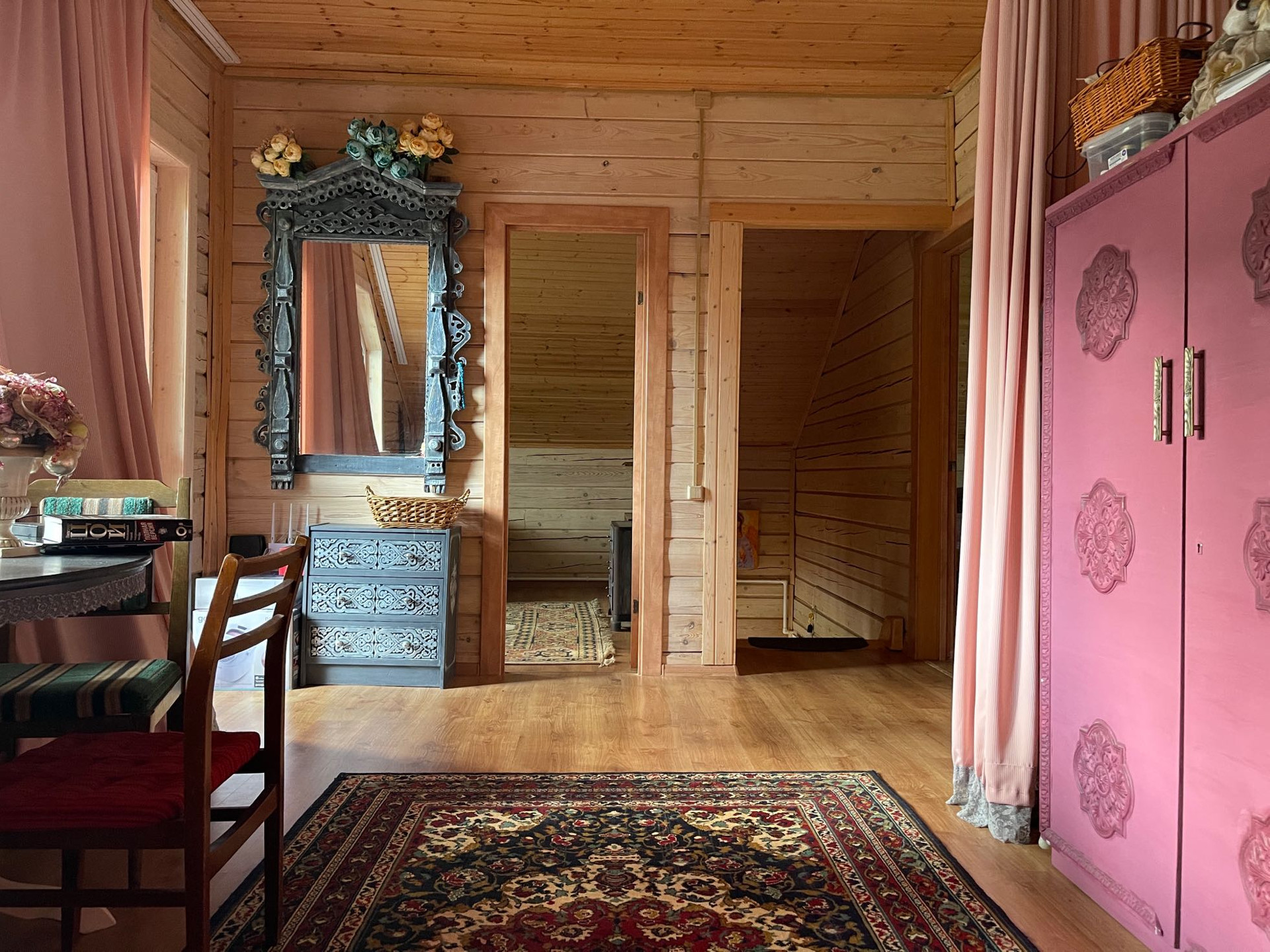 Наверху три спальни и лоджия.