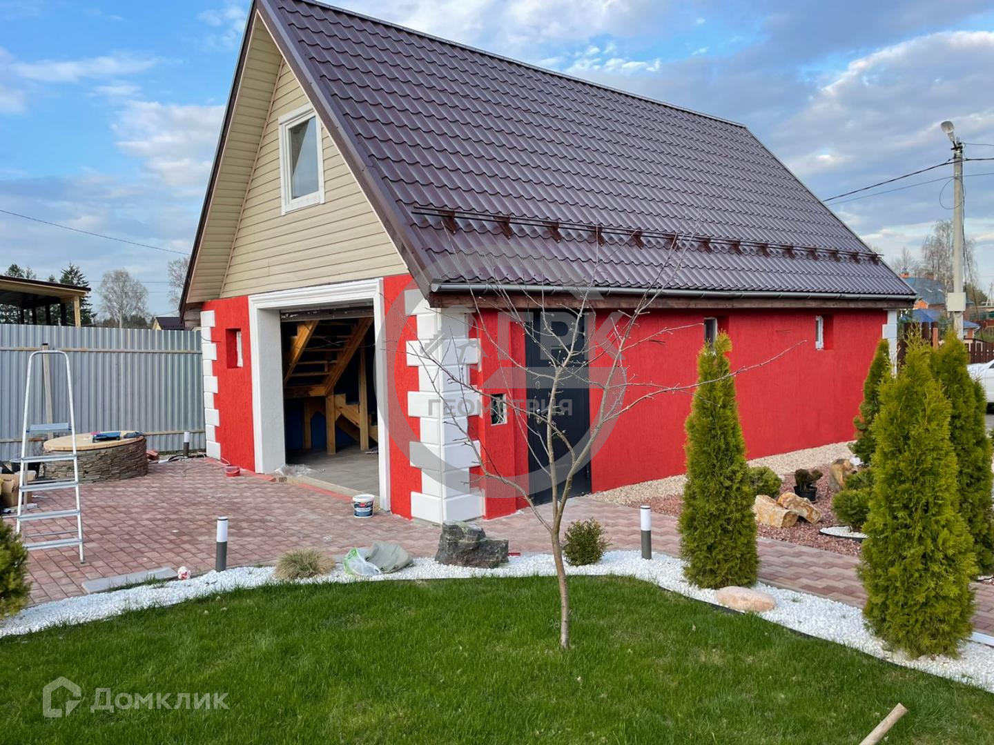 На участке расположены два строения, 2х этажный деревянный каркасный дом-баня 6х6 с террасой, и 2х этажный дом-гараж 6х10 из бетонных блоков, фундамент монолитная плита, крыша металлочерепица. Гараж на 3 машины, сквозной проезд на участок, автоматические ворота с пультом. Можно сделать первый этаж жилым. На втором этаже жилая комната 49 м, санузел, горячая вода круглый год, душевая, кондиционер. Установлена система умный дом, можно дистанционно управлять освещением, отоплением, водопроводом, водопадом.