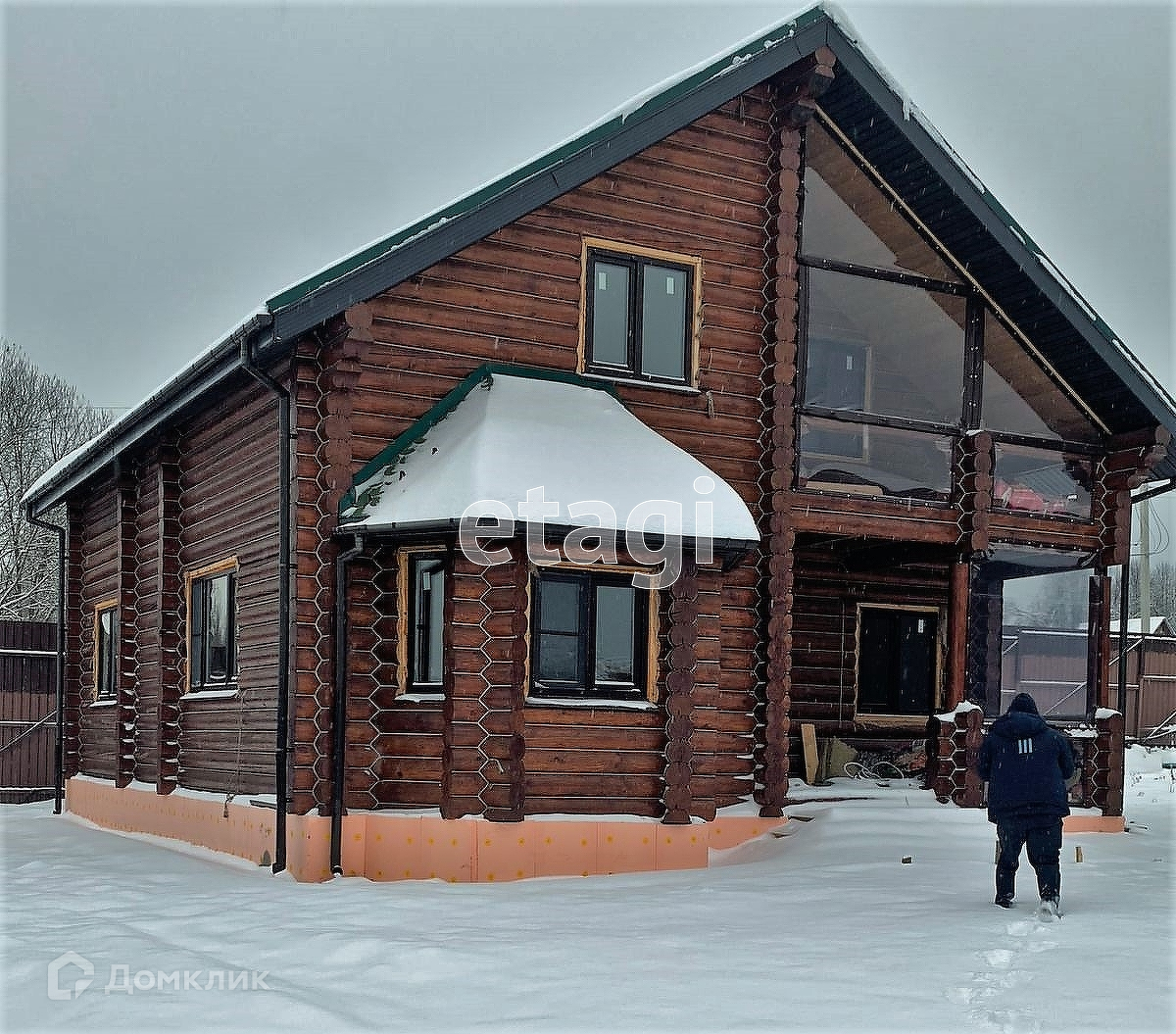 Стильный и современный загородный дом площадью 172,6 кв.м построен на ровном участке площадью 9 соток. Для строительства использовали экологически чистый и безопасный материал - оцилиндрованные бревна 240 диаметра (отшлифован, обработан, окрашен, протянут жгутом).