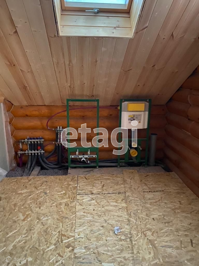 Дом внутри полностью готов к чистовой отделке и не требует колоссальных вложений в отделку, поскольку материал стен это уже, готовая экологичная внутренняя отделка. Установлены все инсталляции - для унитазов, биде и раковин. Сделаны выводы под душевые кабины и зашиты. В бойлерной собран полностью щиток. Куплен напольный газовый конденсационный котел со встроенным бойлером 150 литров.