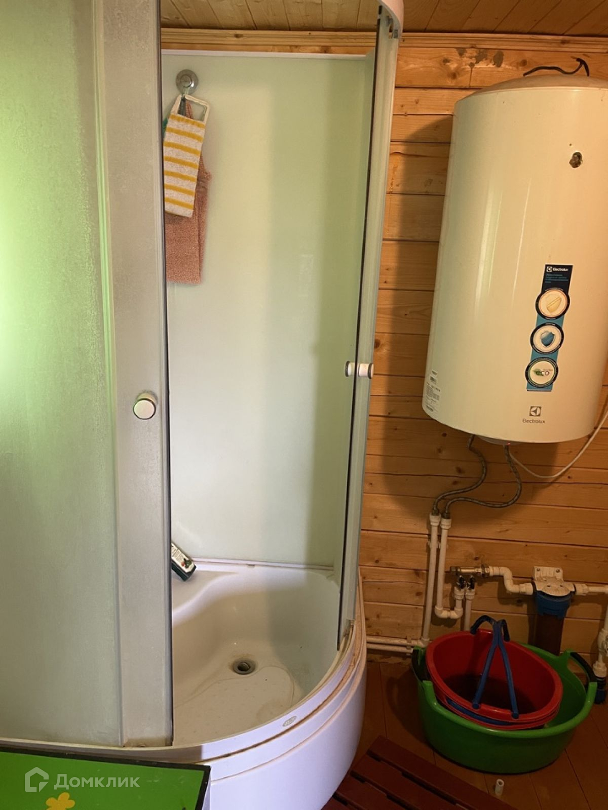 В дом и баню проведена вода. В бане есть душевая кабина и бойлер. Баня топится на дровах. Электричество 6 квт. Баня из бруса. Вода центральная от поселка. В поселке закрытая территория с охраной. Дом продается вместе со всей мебелью.