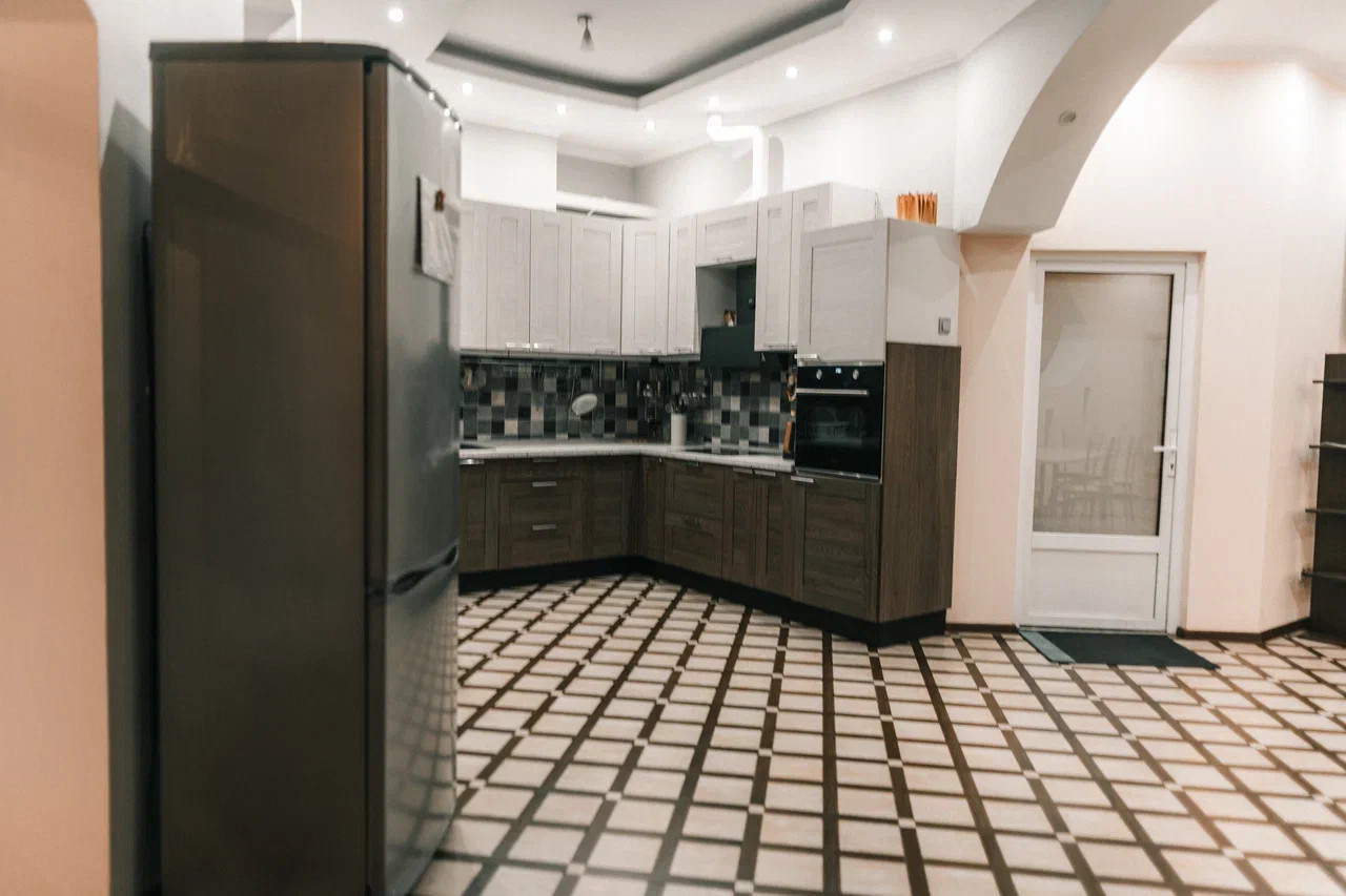 -- Кухня 20м2 (микроволновка, электрочайник, эл. плита, духовка холодильник, посуда.