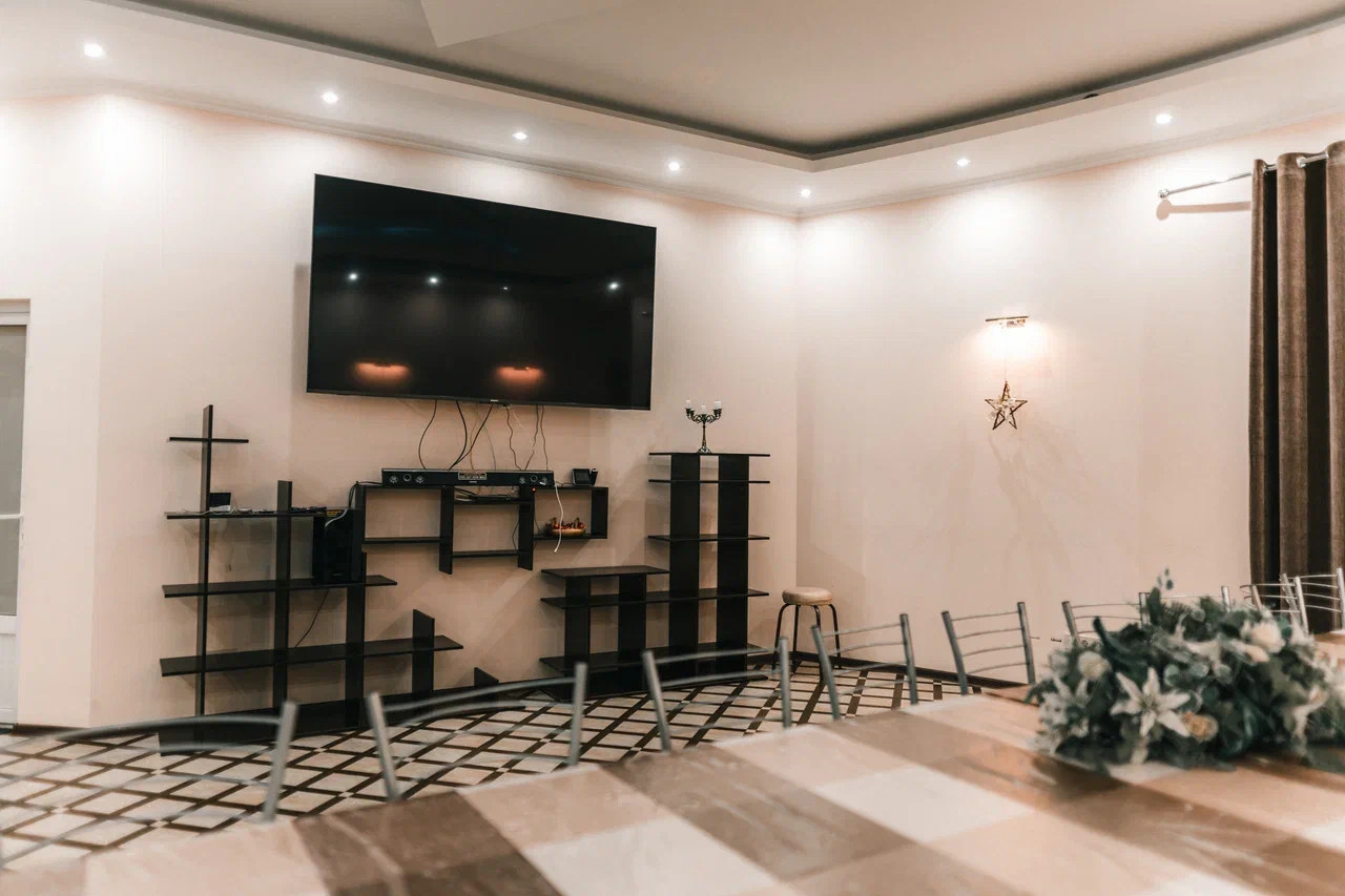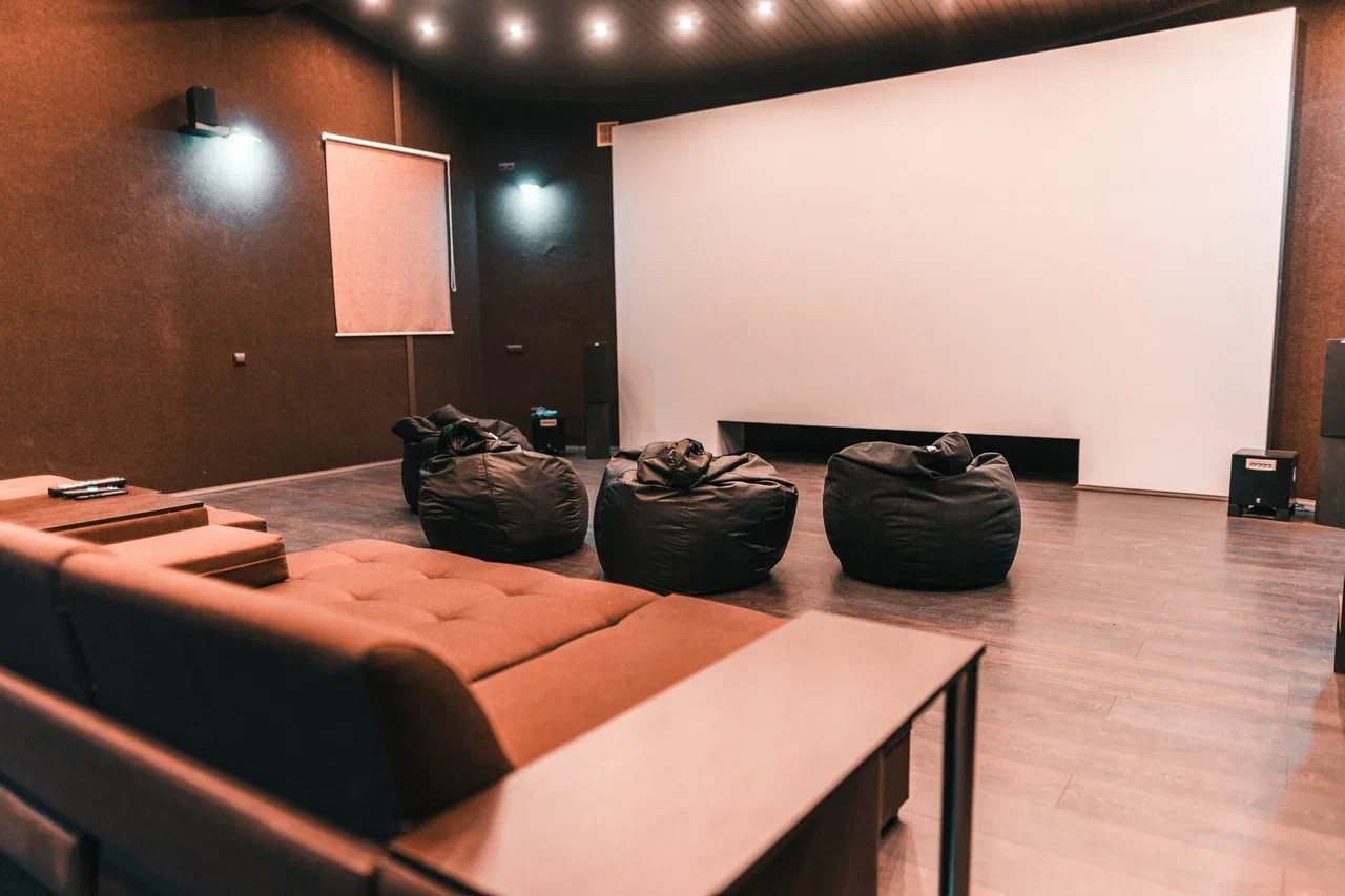 - Кинотеатр с проектором, экран 5,8х2,5 метра. , свободное пространство 70м2 с очень ярким освещением.