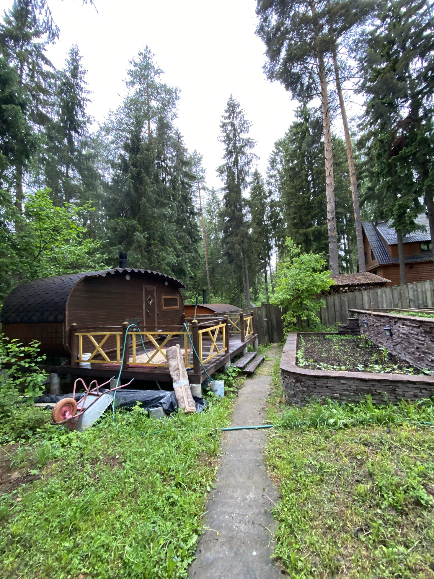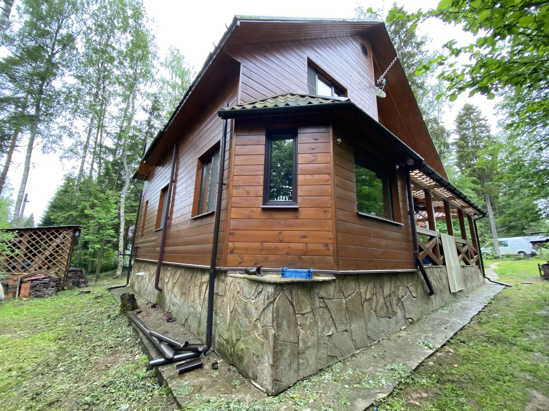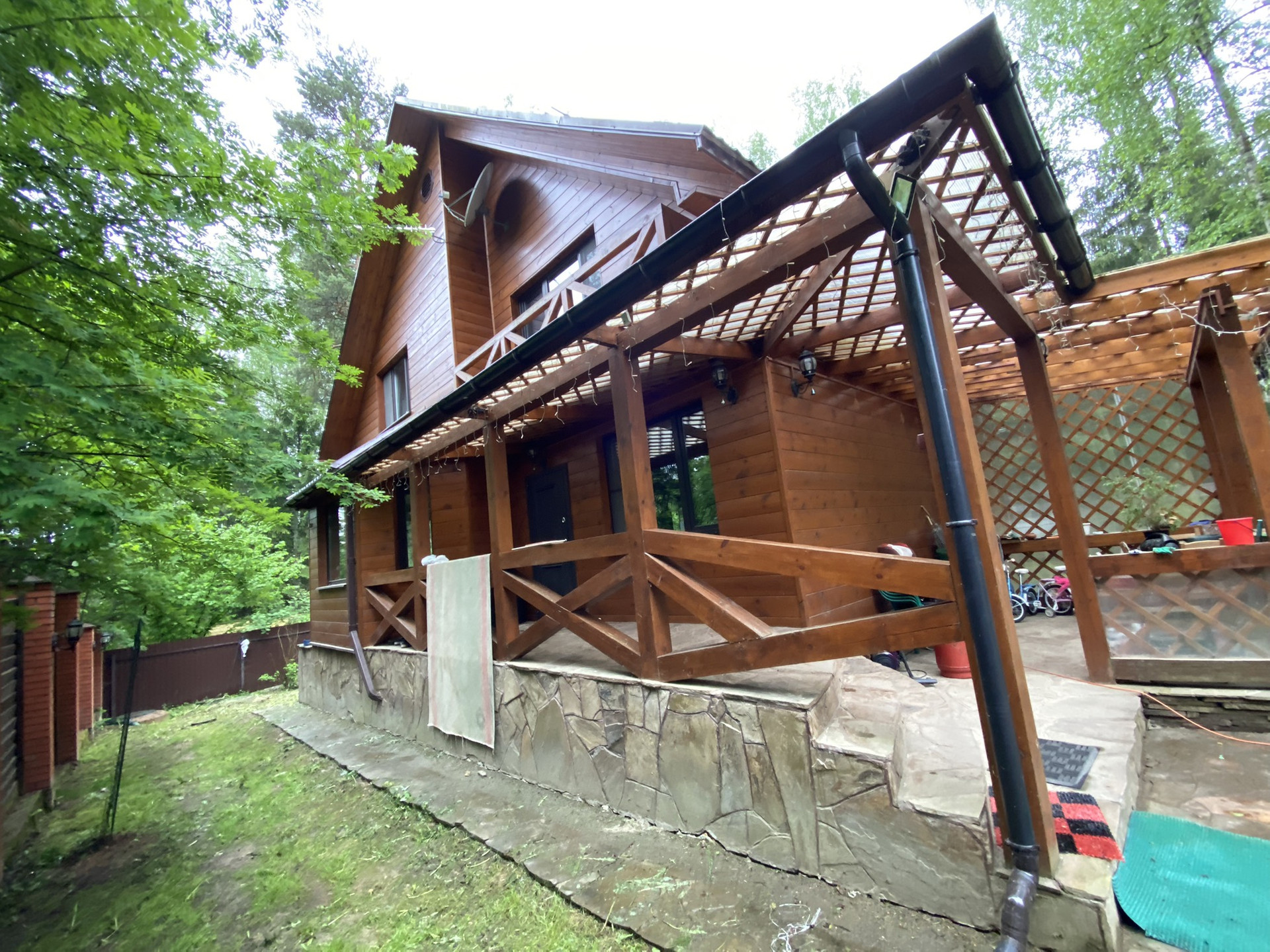Дом из бруса, зимой теплый, летом прохладный. 3 источника отопления - газгольдер на 5 куб (газовый котел), электрический котел, камин и печь - голландка. Септик переливной, скважина, дренажная система вокруг дома. Парковка - 2 машины свободно, при необходимости встают три. Зона для огородных посадок организована, облицована камнем. На участке баня, хоз. постройка, вольер, мангальная зона. Малина, смородина, клубника, плодовые деревья, цветы. Участок лесной - сосны, березы, ландыши, черника, брусника, грибы. Рядом в 50 метрах пруд. В доме холодный чердак и полностью оборудованный для хранения подвал со стеллажами и бойлерной комнатой. Два санузла на разных этажах. На первом этаже гостиная - кухня, кабинет, санузел, черный вход. На втором этаже 3 спальни, просторный холл, санузел.