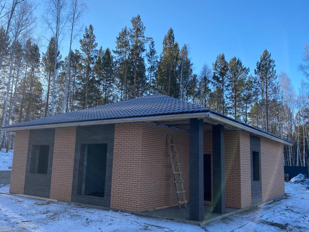120 кв. м построен из газоблоков, обличовка из кирпича на участке 8 соток.