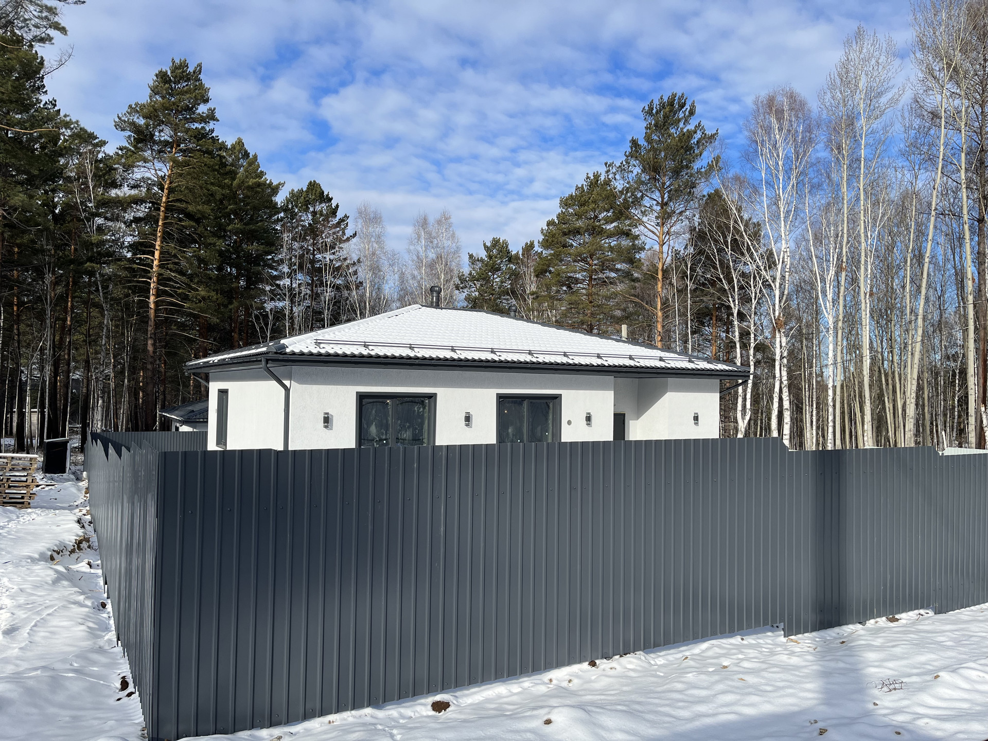 Забор профлист, откатные ворота.