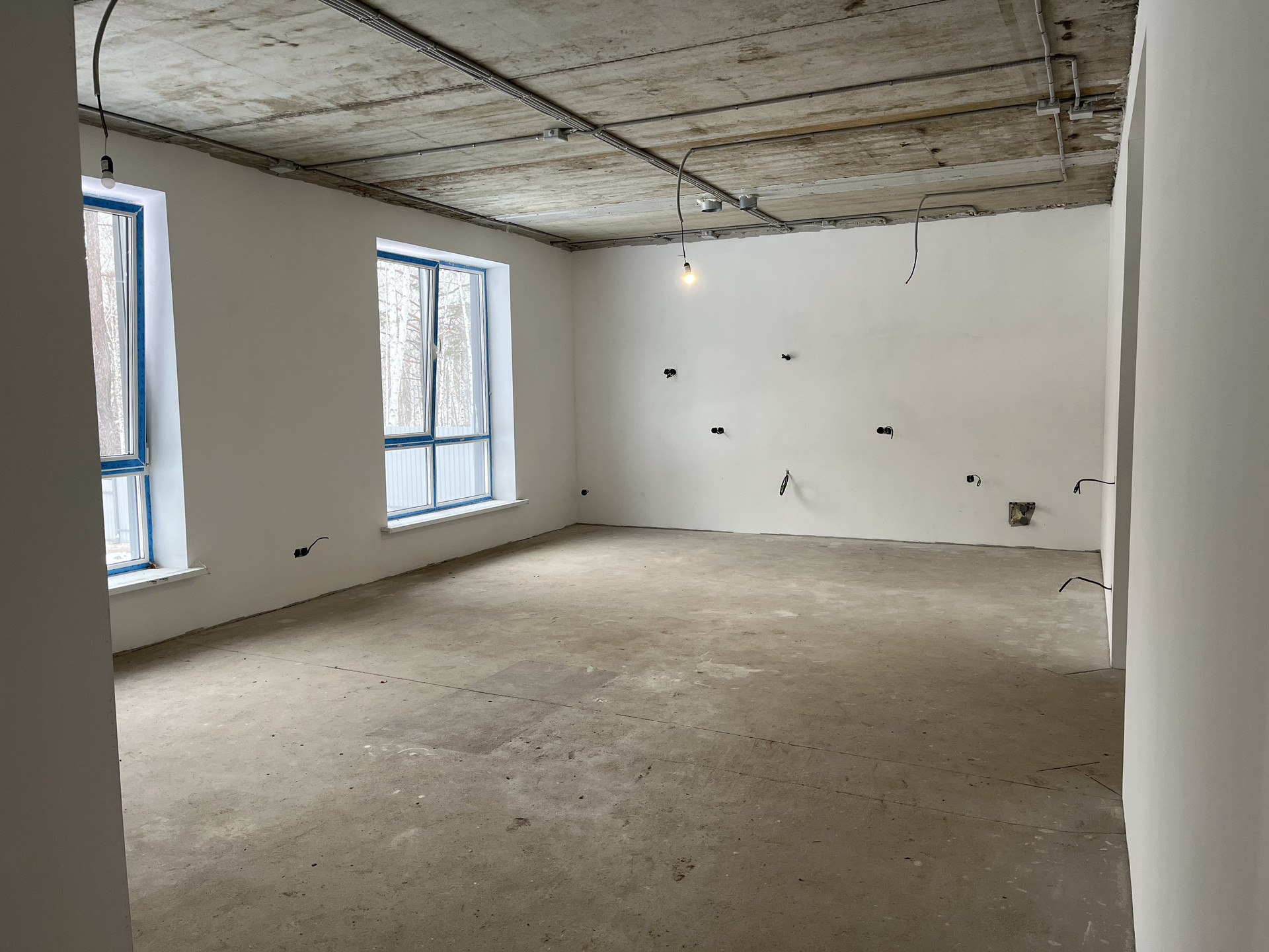 Окна : 5-ти камерные , с защитой от УФ лучей.Планировка: прихожая, 2 санузла, 3 спальни, гостиная + кухня, техническая комната .Исполнение :- предчистовая отделка дома / сухая стяжка, штукатурка, инженерные системы/, электрика разведена .