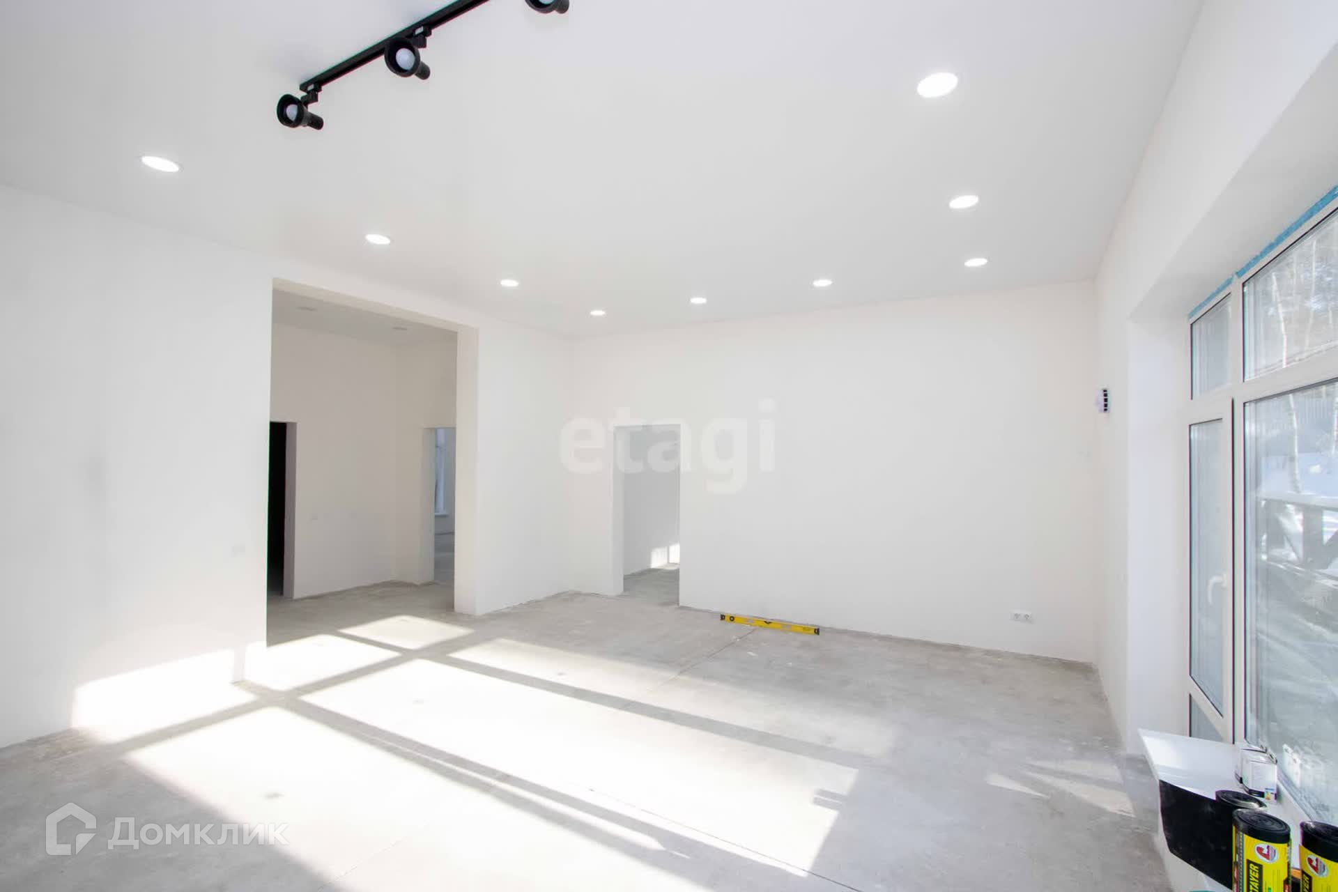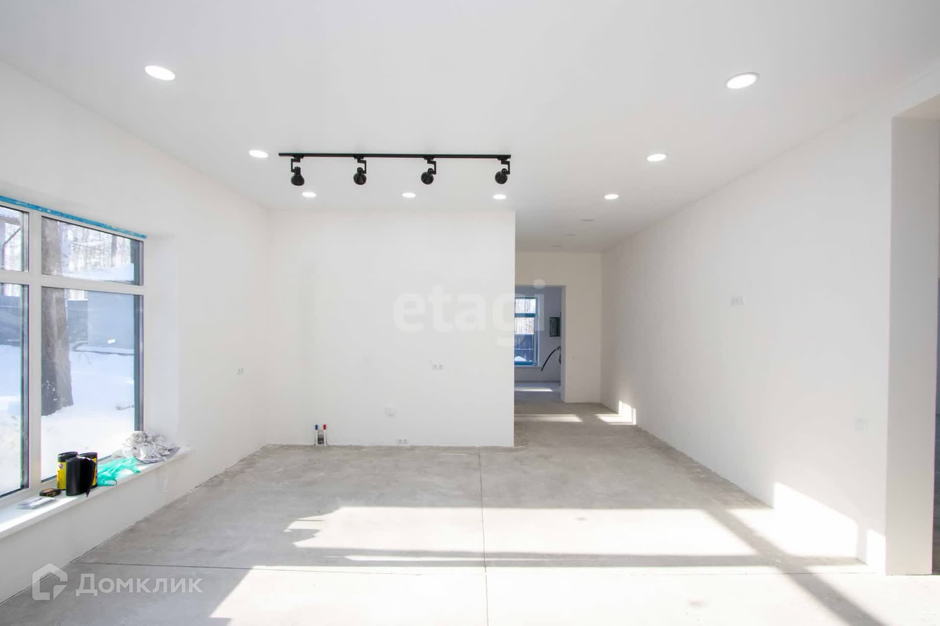 В доме большая прихожая, просторная кухня-гостиная, четыре спальные комнаты и два совместных санузла. Большие пластиковые окна, хорошая входная дверь. Отопление - теплый пол, натяжные потолки по всему дому с точечным освещением. Отделка в доме - штукатурка финишная под покраску. Выведены все мокрые точки.