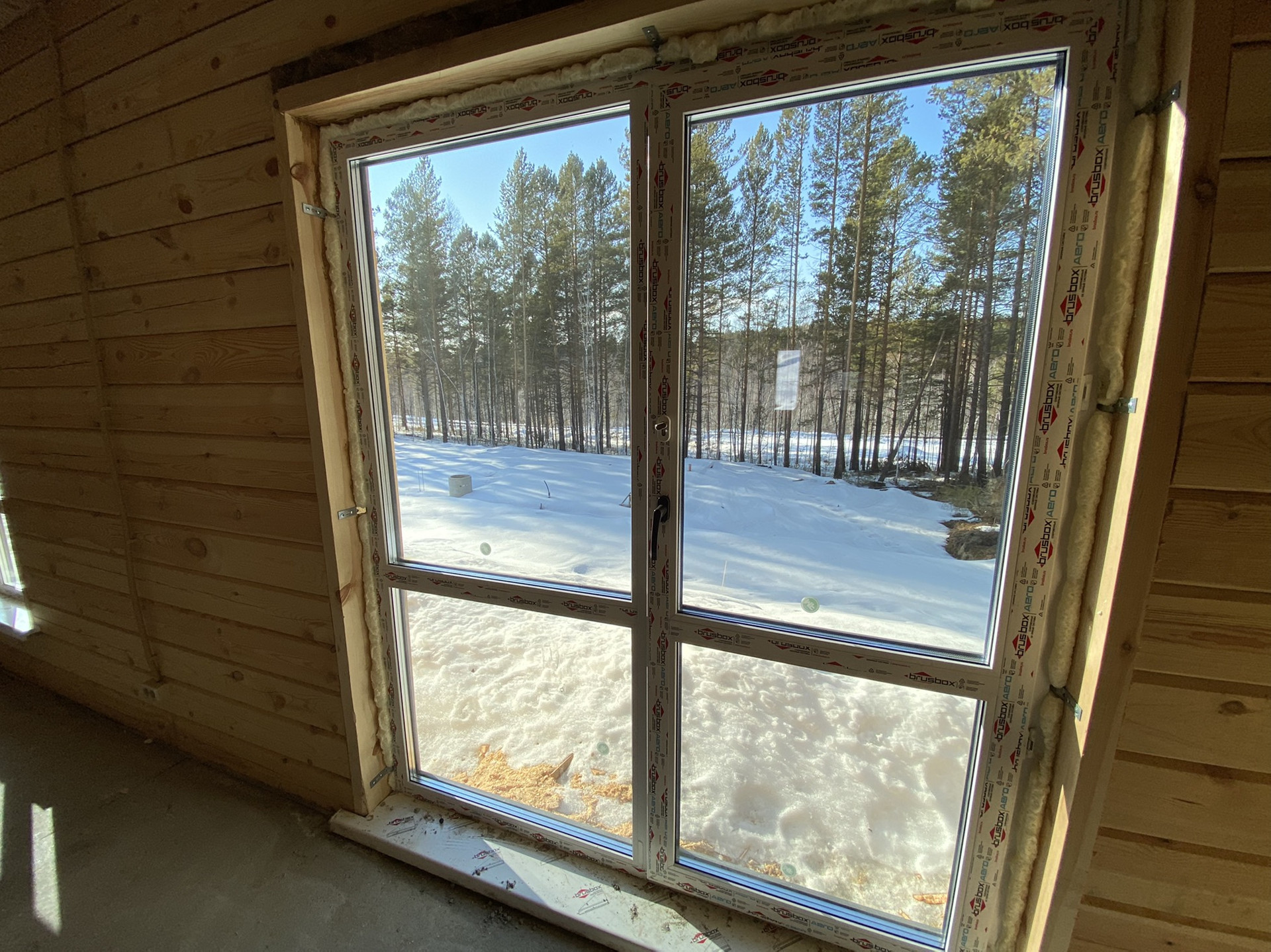 - Большие панорамные окна коричневого цвета пропускают много естественного света.
