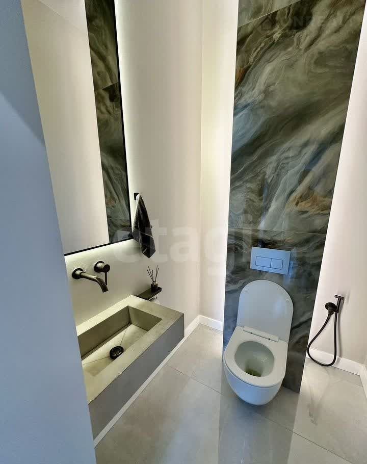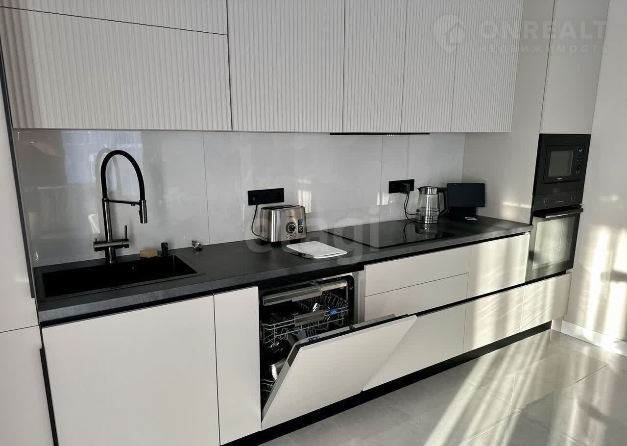 Планировка дома включает три спальни, одну из которых занимает мастер-спальня с собственным санузлом, и просторную кухню-гостиную с выходом на огромную террасу. Летняя терраса оборудована всем необходимым для комфортной жизни: есть выход для мойки и мангальная зона.