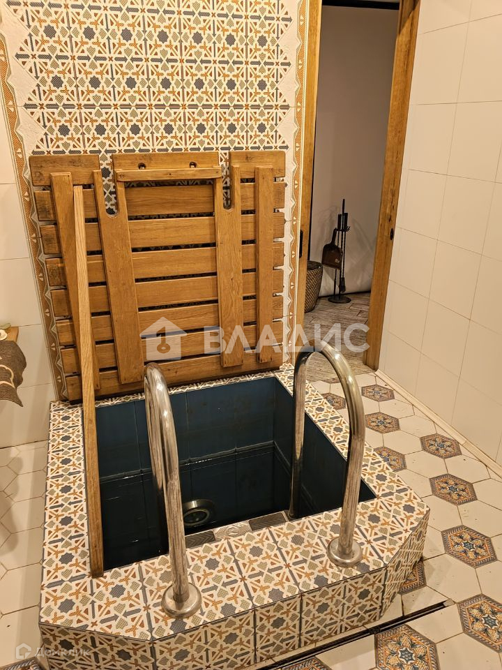 Баня также с теплыми полами, в ней парная с печью Harvia, купелью и комнатой отдыха с проектором.