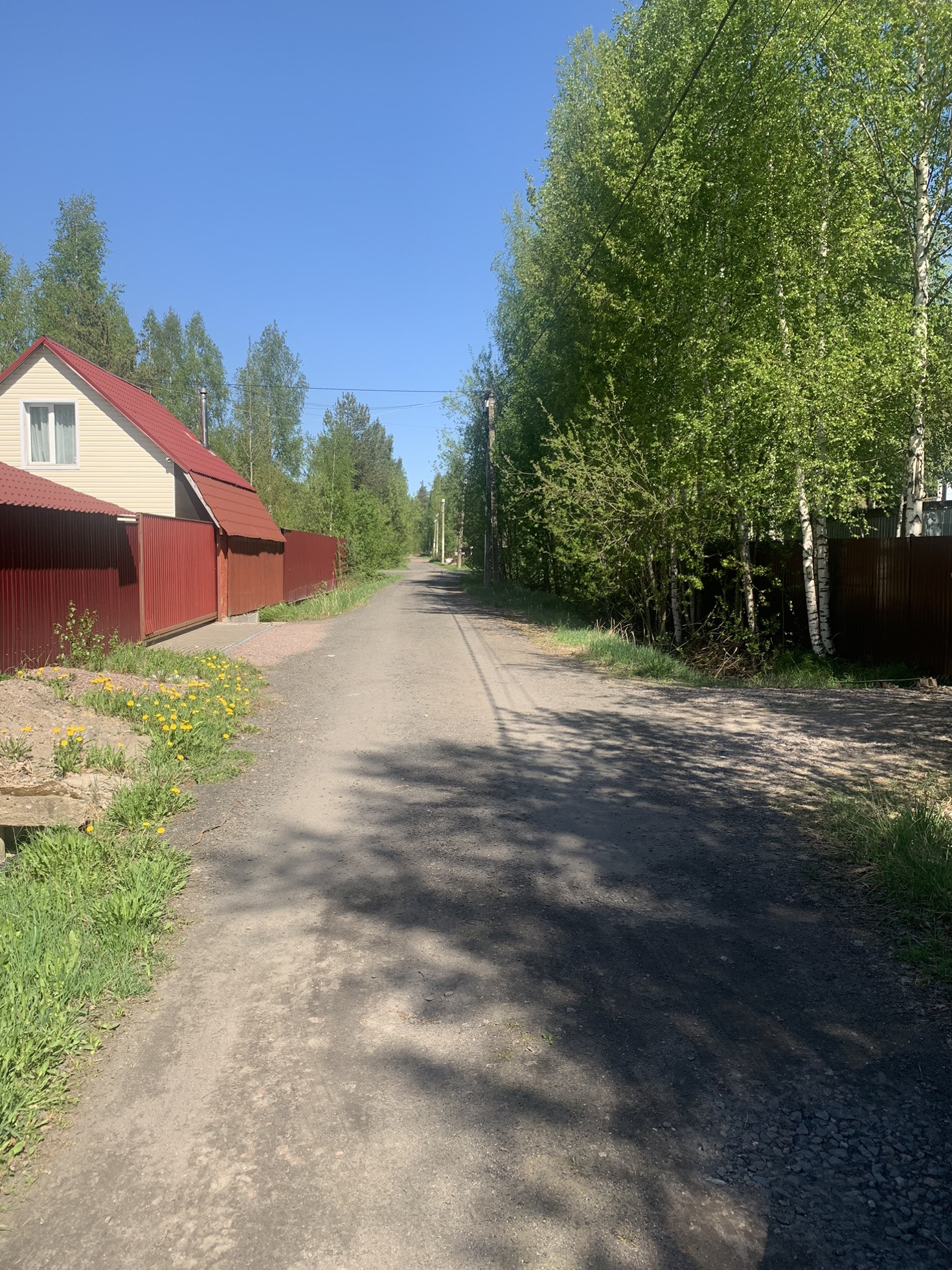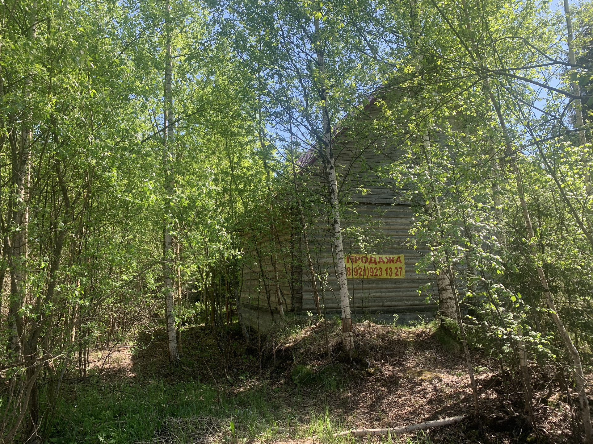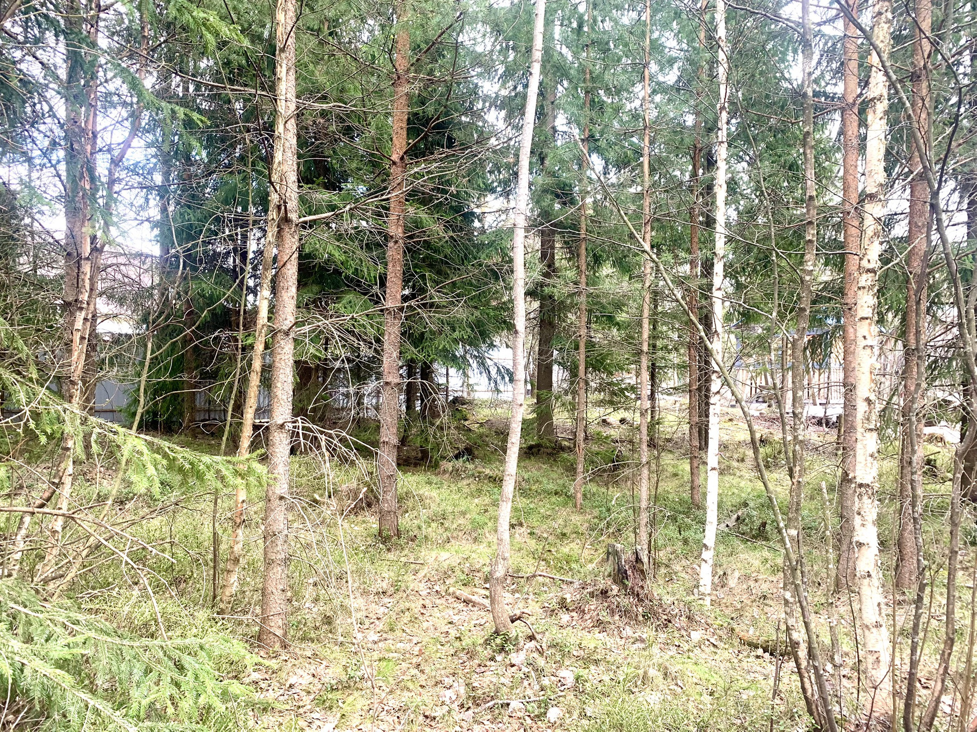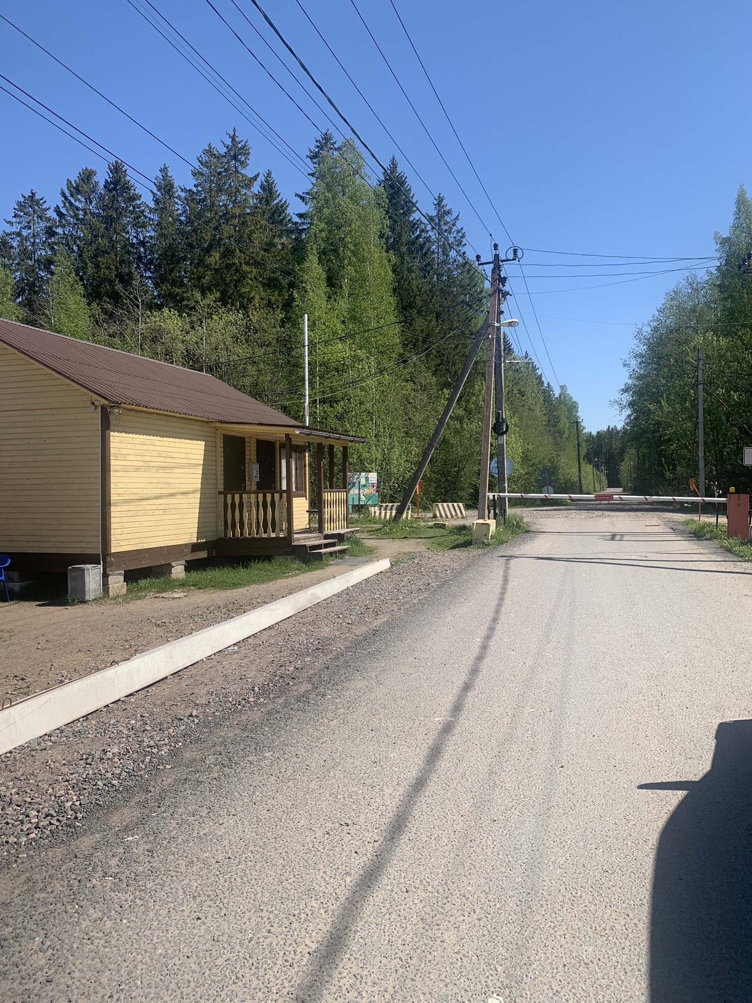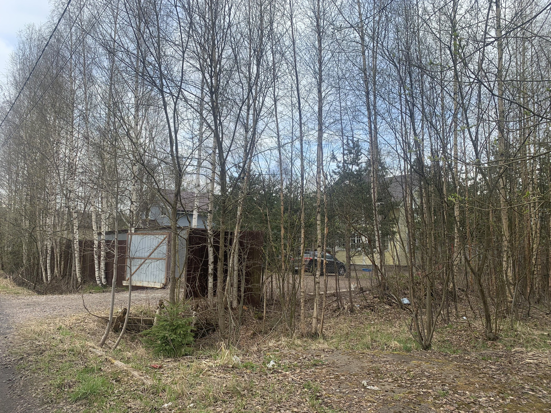 На участке растут сосны. Сделан заезд с дороги на участок.