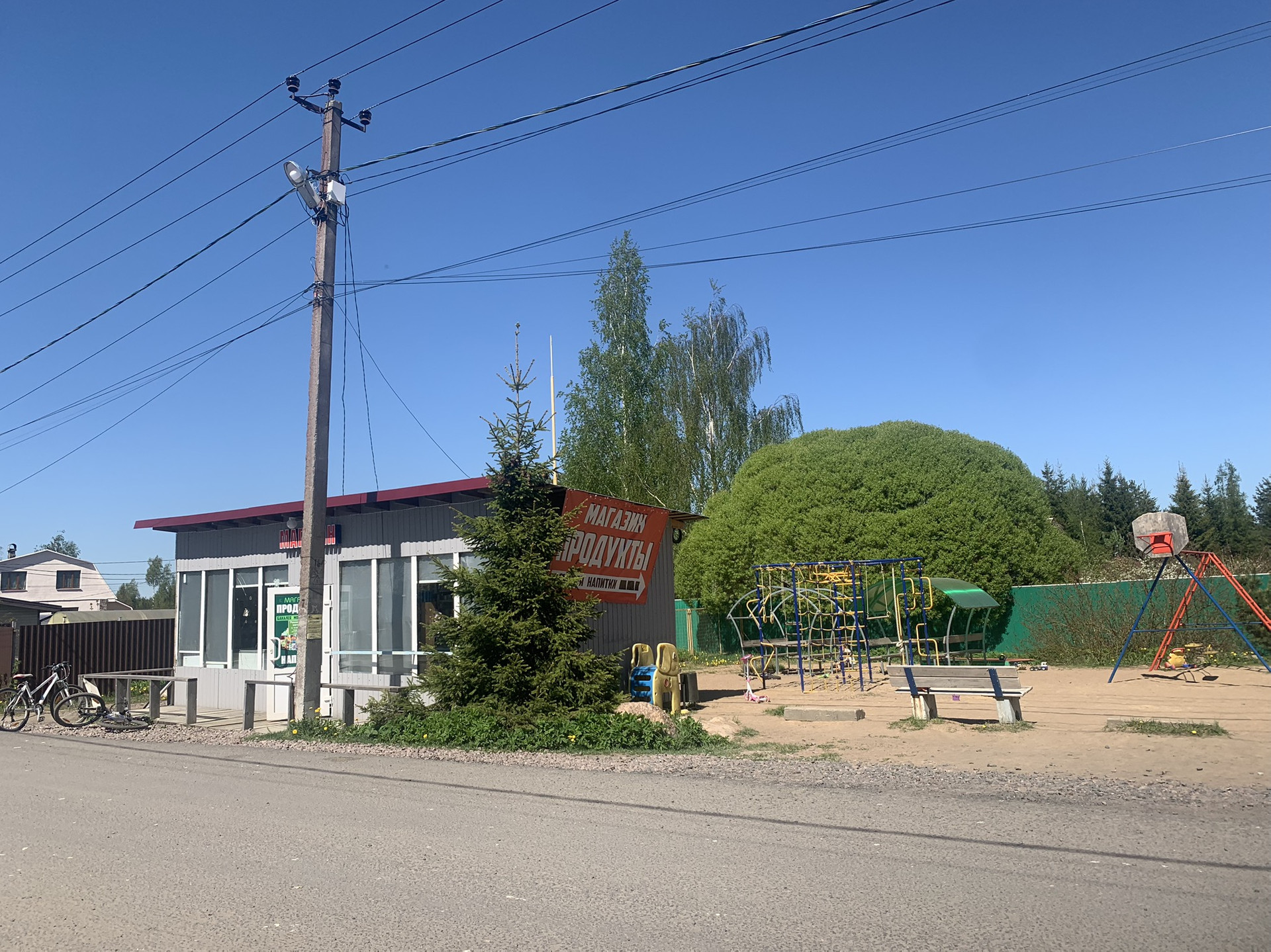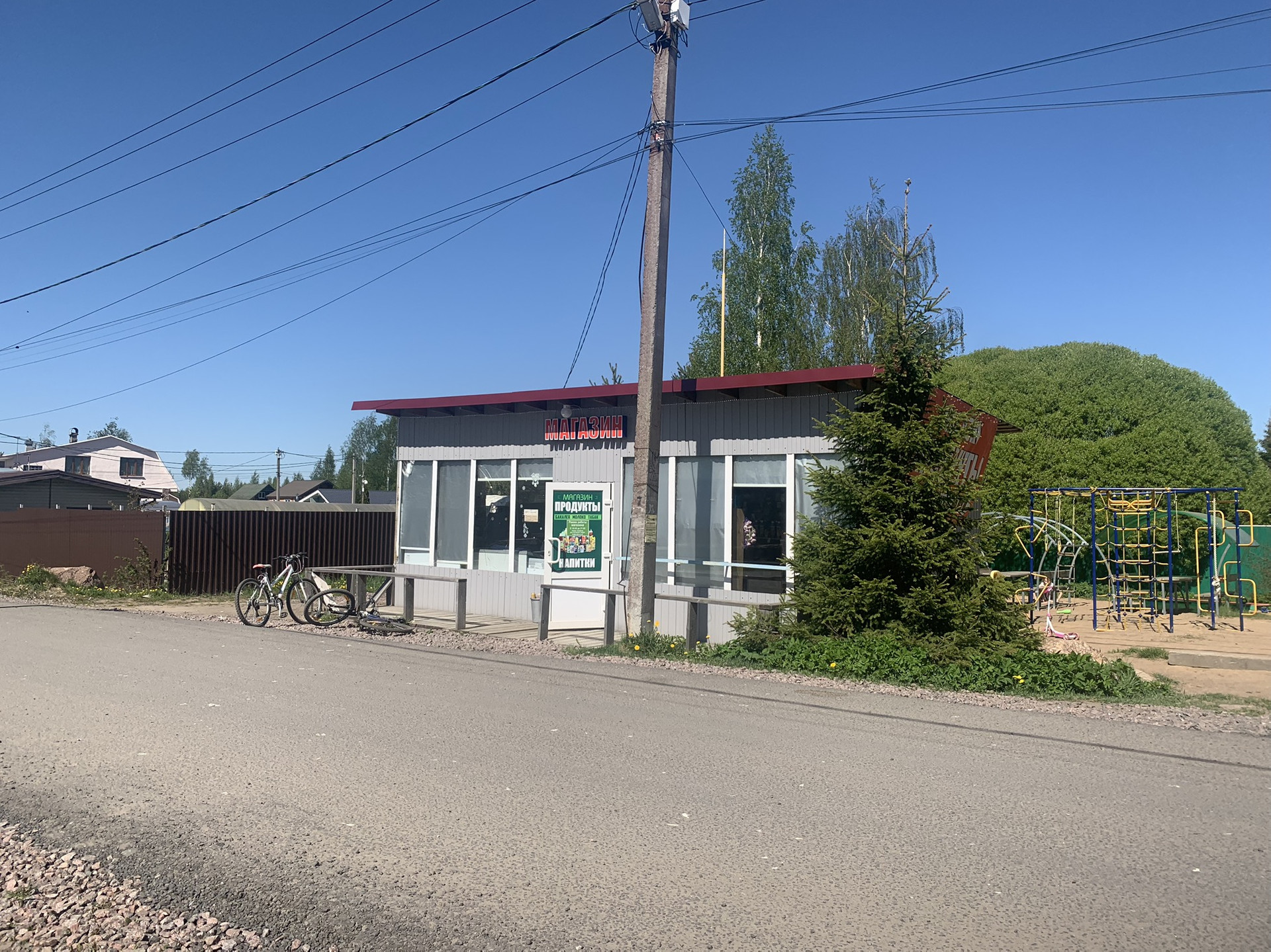 В дачном кооперативе есть свой продуктовый магазин и детская площадка. До ближайшего супермаркета можно доехать на машине за 2 км. Район экологически чистый, рядом находится лес.