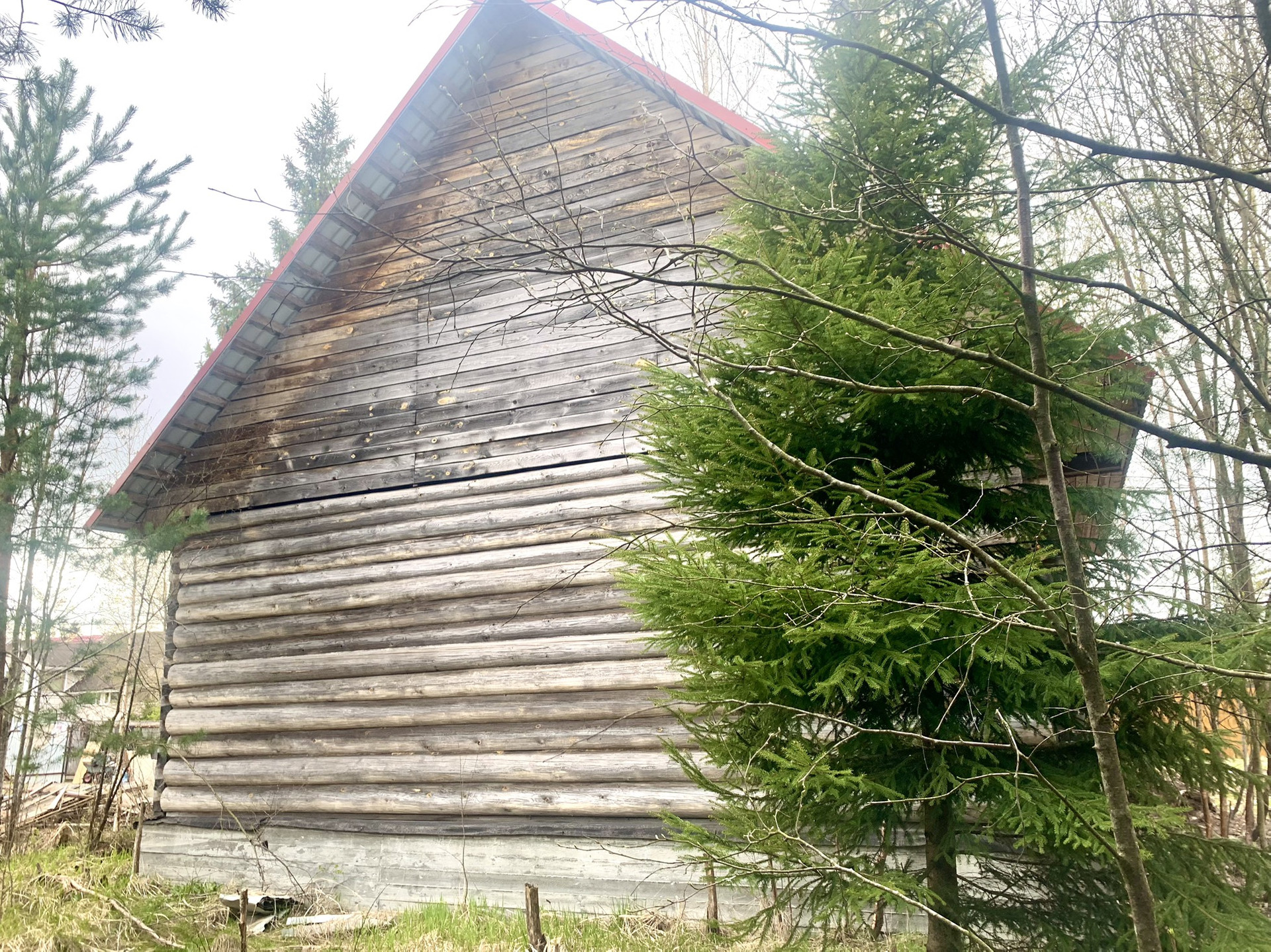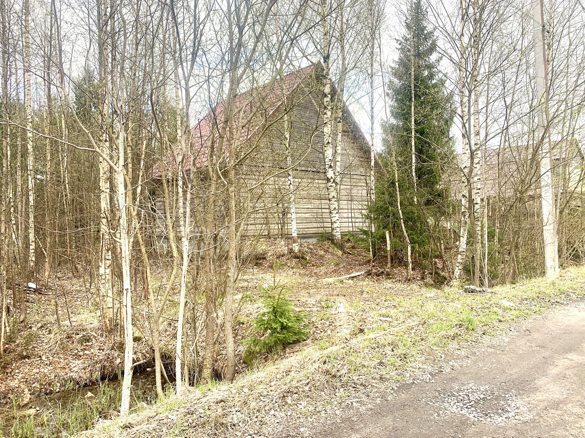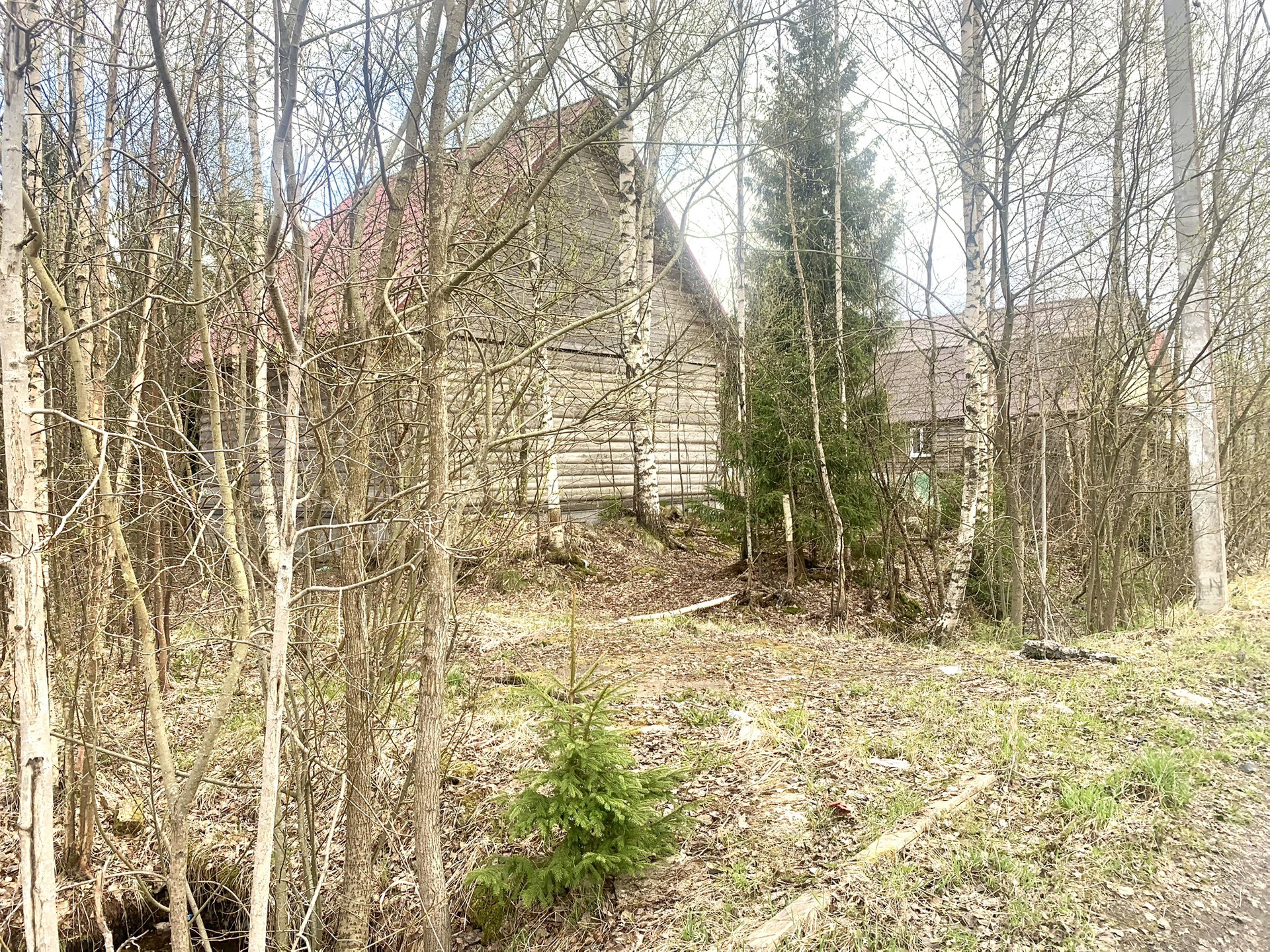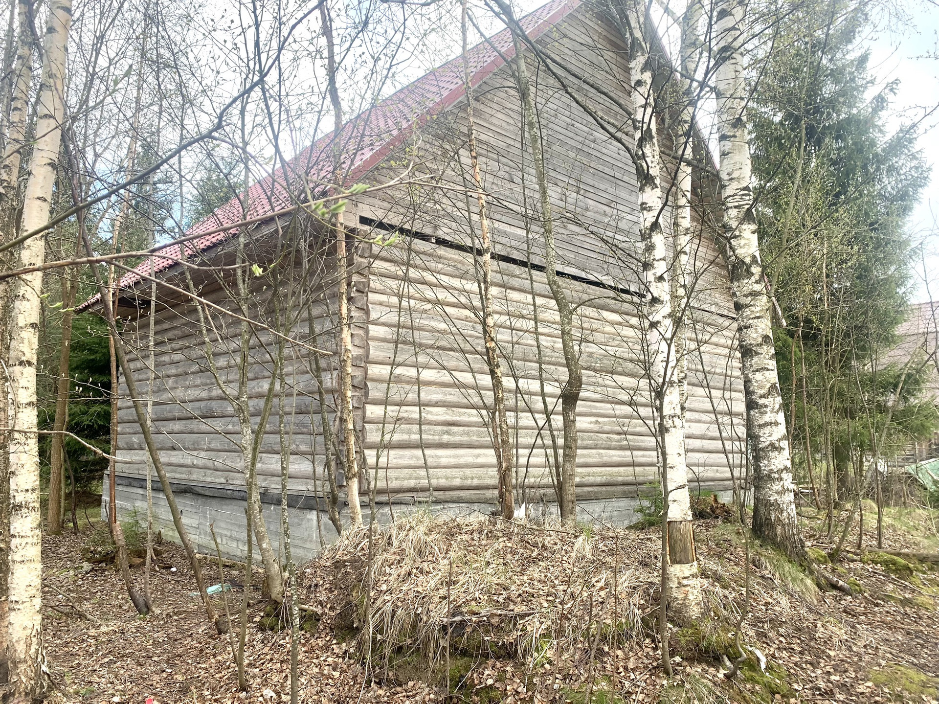 На участке уже построен сруб дома из круглого бревна диаметром 27 см. Фасад утеплён, фундамент ленточный, кровля — металлочерепица с утеплением минеральной ватой. Газ магистральный проходит вдоль границы участка(подключение очень бюджетное 230тр) Электричество — 8 кВт с возможностью увеличения мощности.