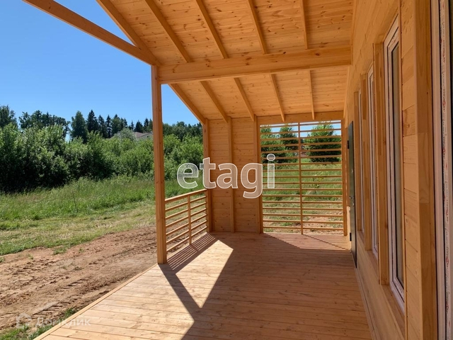 Дом одноэтажный (96м2) с максимально функциональной планировкой: тамбур, просторная кухня – гостиная с выходом на террасу, с,у, две спальни. Большая площадь остекления делает дом очень светлым, а поднятие конструкции над уровнем земли значительно улучшает и без того замечательные видовые характеристики на лес и участок. Подведены центральные коммуникации: электричество 12 кВт (трехфазное), центральный круглогодичный водопровод, центральная канализация, интернет оптоволокно - провайдер Истранет. Магистральный газ по границе участка (подключение оплачено).