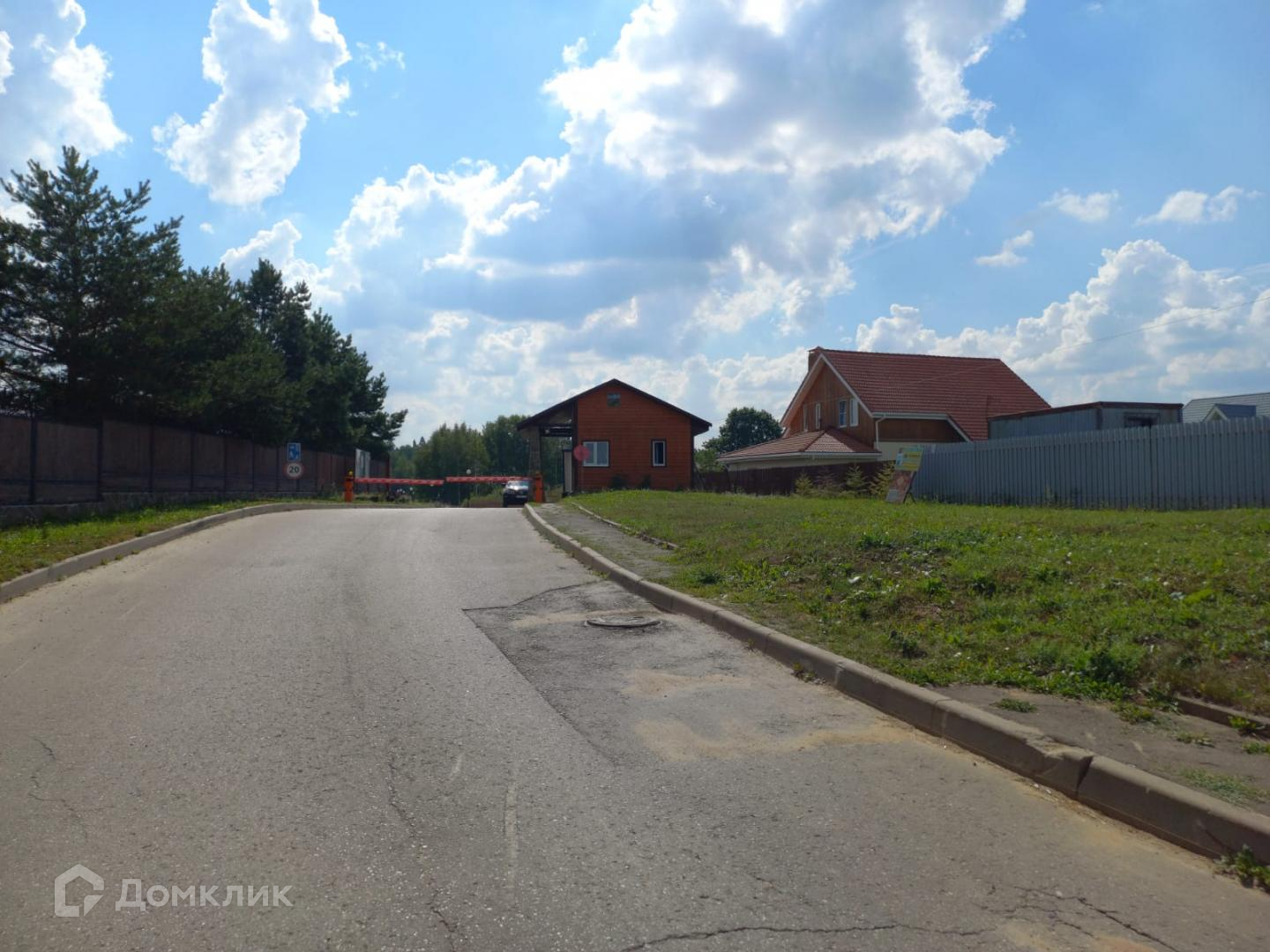 — На въезде в поселок построен КПП.(поселок охраняется)
