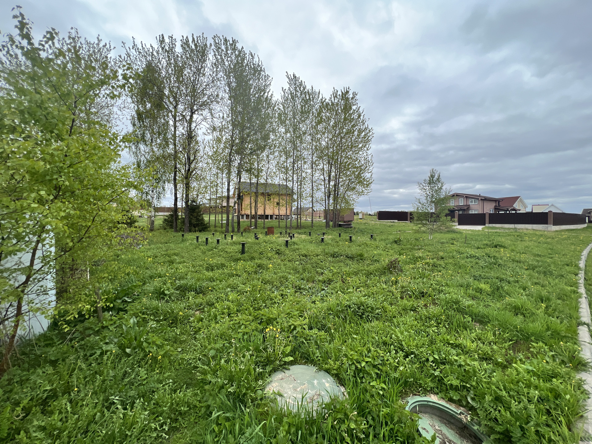 Участок правильной ровной формы. Все центральные коммуникации готовы: электричество 12 квт(трехфазовое), центральный круглогодичный водопровод, центральная канализация, магистральный газ по границе участка, интернет оптоволокно. В поселке асфальтированная дорога, электричество проложено под землей, круглосуточная охрана, вывоз мусора. Вечером работает подсветка территории, стригут газоны, зимой чистят дороги от снега. Так же в поселке детская площадка, лыжная трасса, тюбинг и каток. На участке есть свайной-винтовой фундамент (под баню или гостевой дои). Поселок граничит с большим лесным массивом. Тихое место по Новорижскому шоссе.