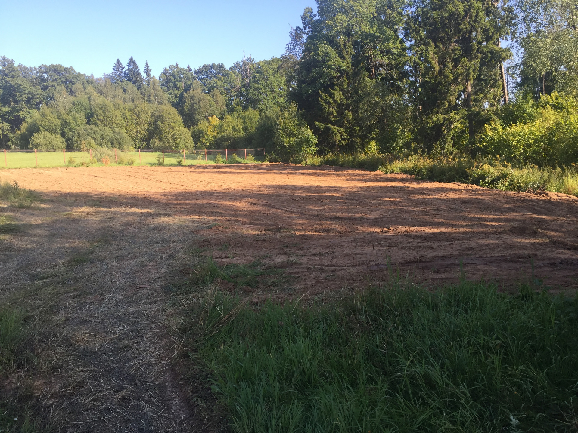 Участок состоит из выровненной площади участка - завезено 200 м3 поселкового грунта, 100 м3 песка и участка леса (около 15сот+). Полоса леса очищена от старых деревьев и сухостоя. Высажено более 200 молодых кустарников и деревьев - ели, горные и сортовые сосны, серебрянные клены, манжурский орех, барбарис.