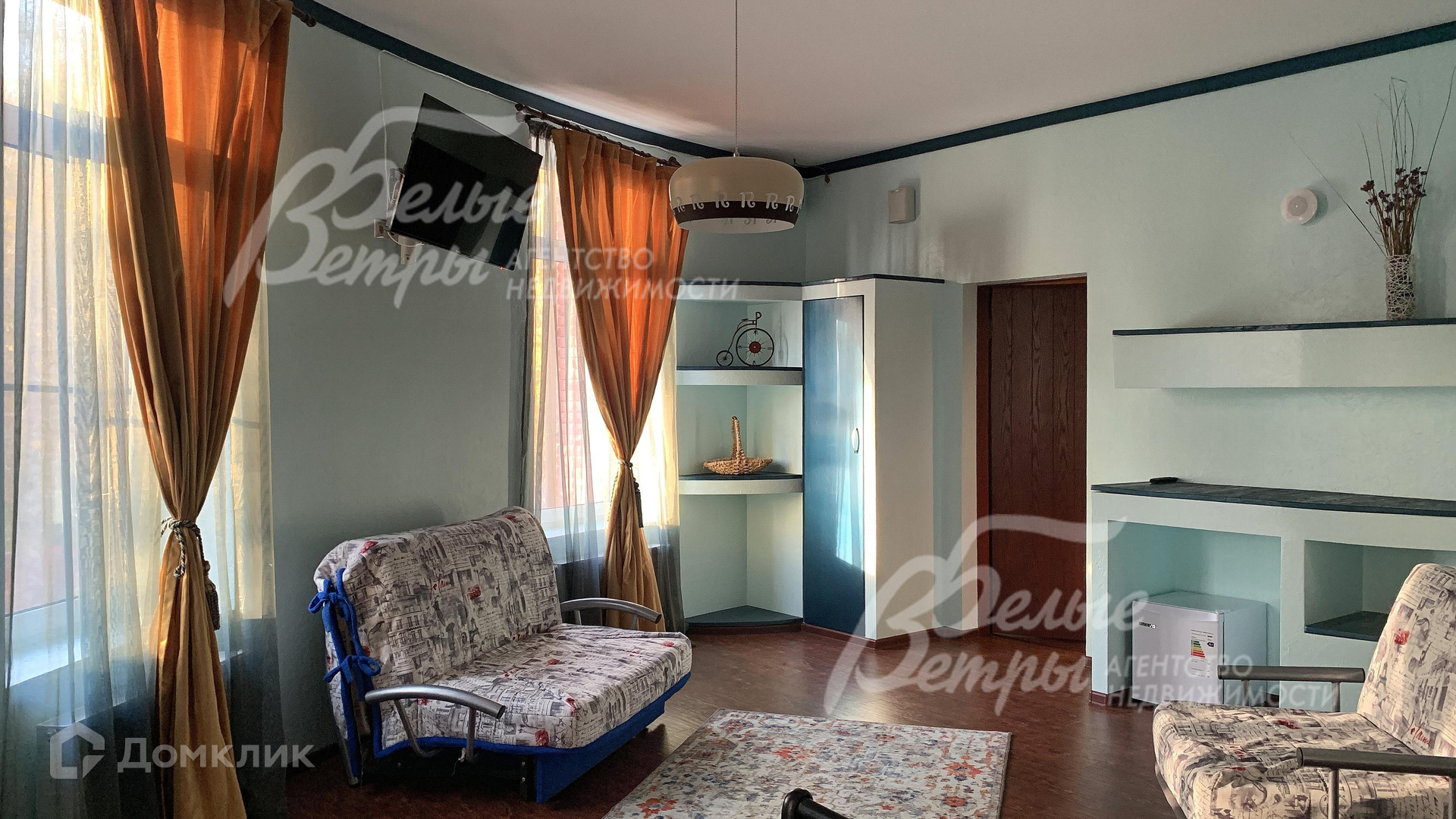 Мебель, оборудование: дом полностью меблирован и готов к проживанию. Кухонный гарнитур (МДФ глянцевый багряного цвета) со всей техникой: морозильная камера, огромный холодильник, варочная газовая панель, конвекторная печь, посудомоечная машина, вытяжка, СВЧ-печь. Столовая мебель - 2 стола, 10 стульев. В каждой спальне двуспальные кровати, прикроватные тумбочки, везде ортопедические матрасы. На кухне большой сейф. Много источников света, прикроватные светильники. Шторы, тюль - на всех окнах. В доме всего 11 ТВ, стиральная машина Indesit, пылесос, во всех санузлах установлены фены..