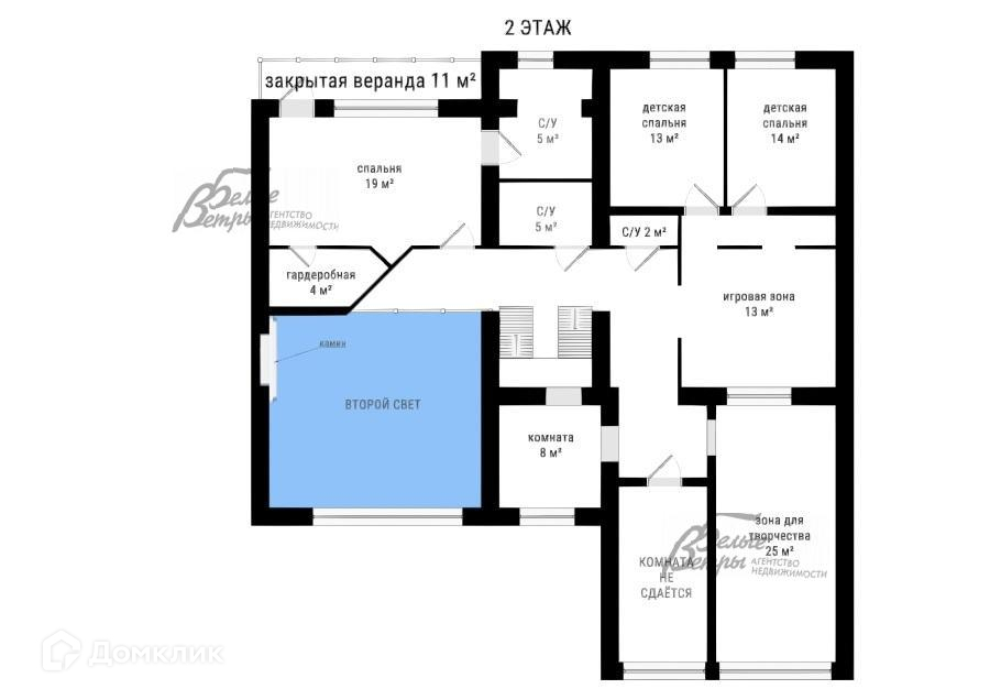 2-ой этаж: холл 15,3 кв.м, мастер-спальня 19,2 кв.м, санузел с душем 5,2 кв.м, гардероб 4 кв.м, санузел с ванной 5,1 кв.м, игровой холл 13 кв.м, первая детская спальня 13 кв.м, вторая детская 14 кв.м, санузел 1,7 кв.м, зона для творчества и отдыха 25 кв.м, комната 10 кв.м..