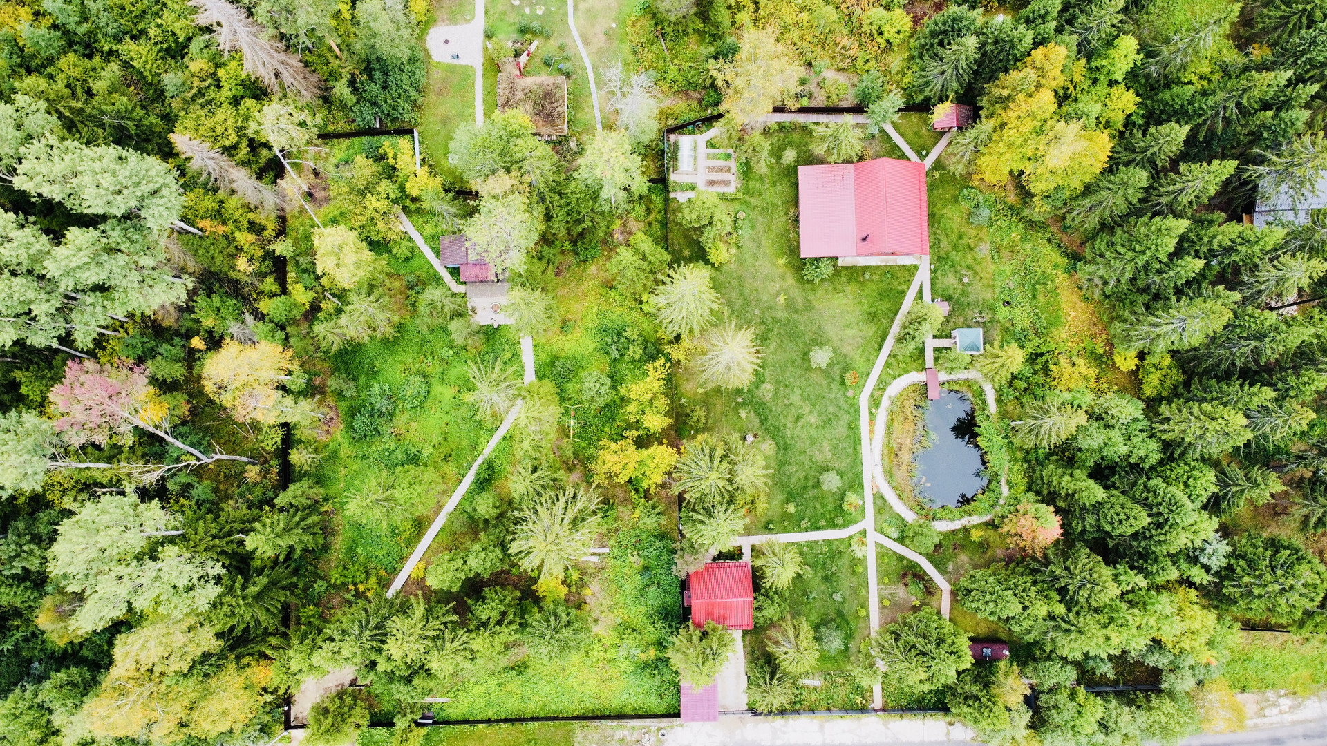 На участке очень красиво, имеются дорожки, детская площадка и уличный туалет.