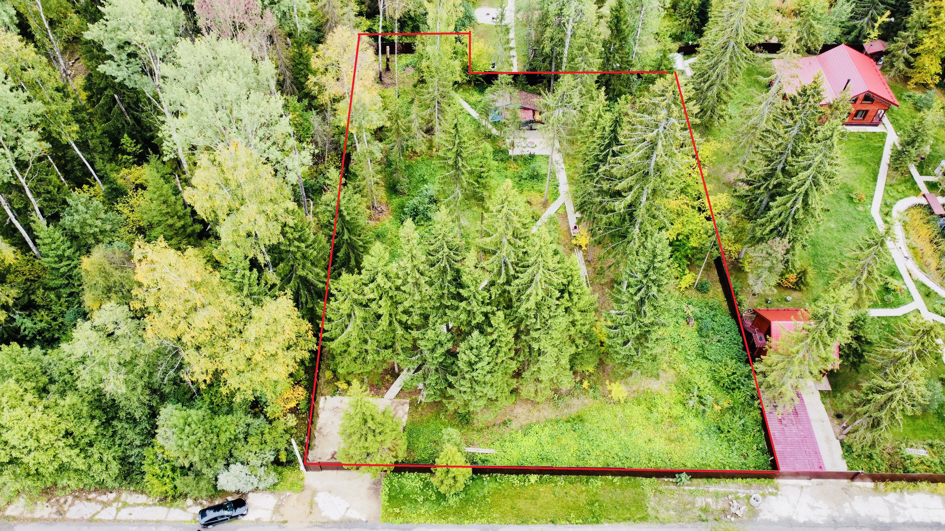 Участок со всех сторон огорожен капитальным забором из профлиста с автоматическими воротами и калиткой, сделан заезд на участок и парковочные места, вырублены все кусты и старые деревья, оставлены самые красивые для ощущения лесного участка, имеется электричество.
