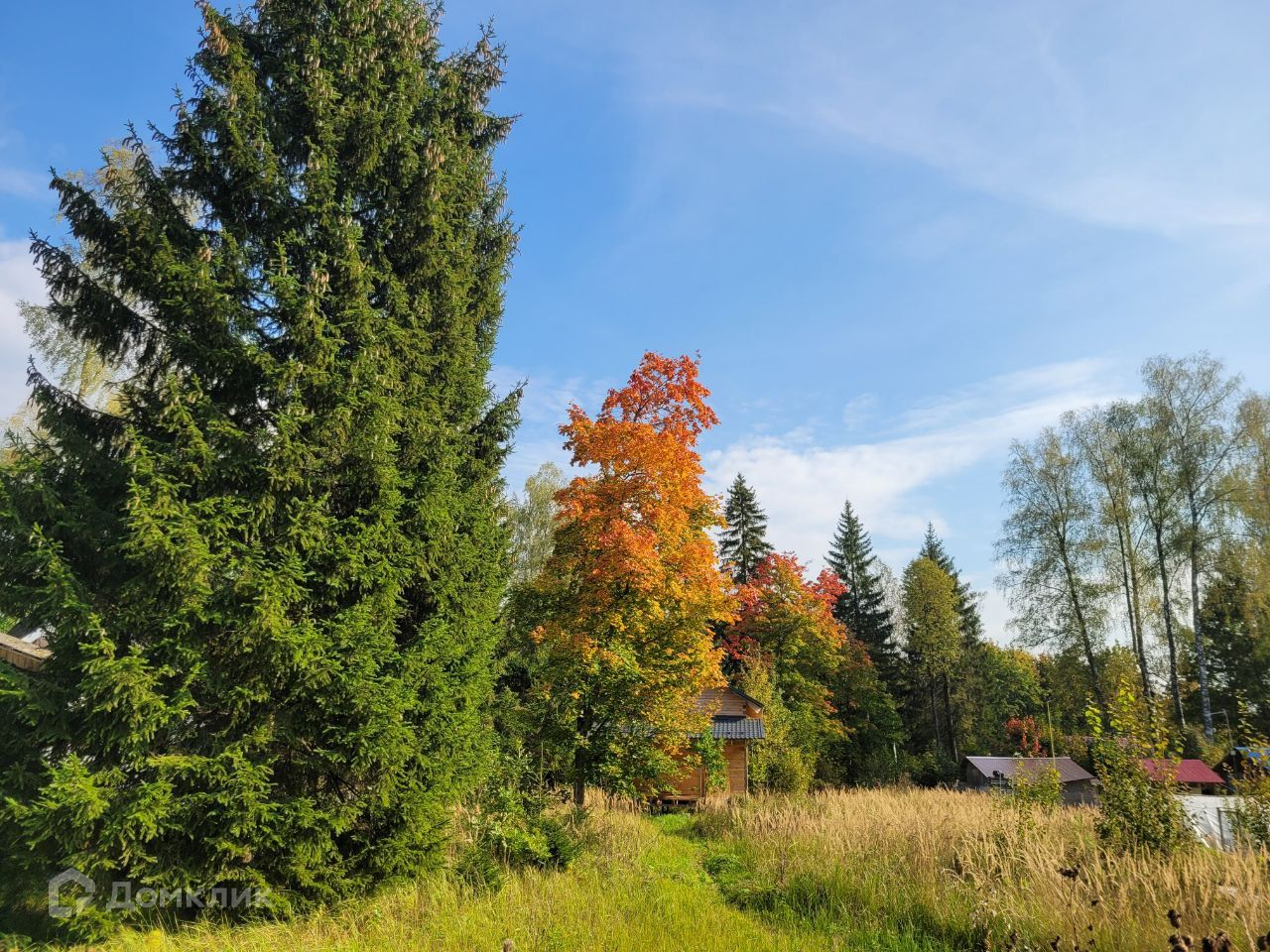 Участок находится в хорошем месте, не заросший,  с прекрасными елями на территории.