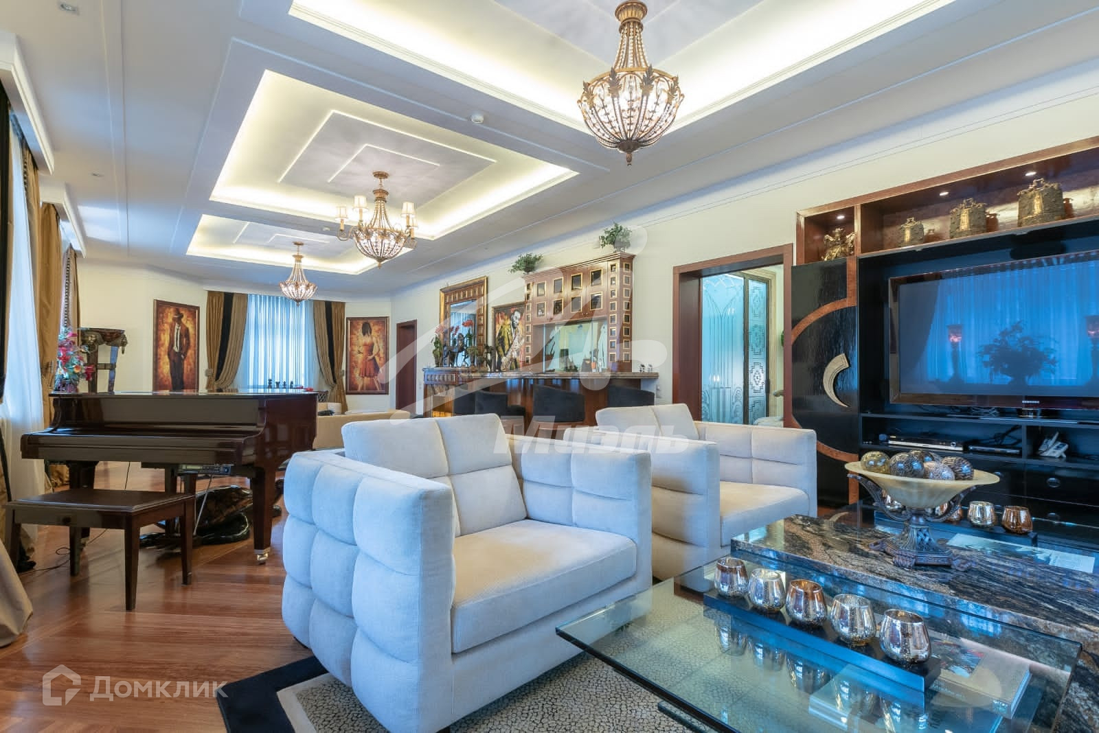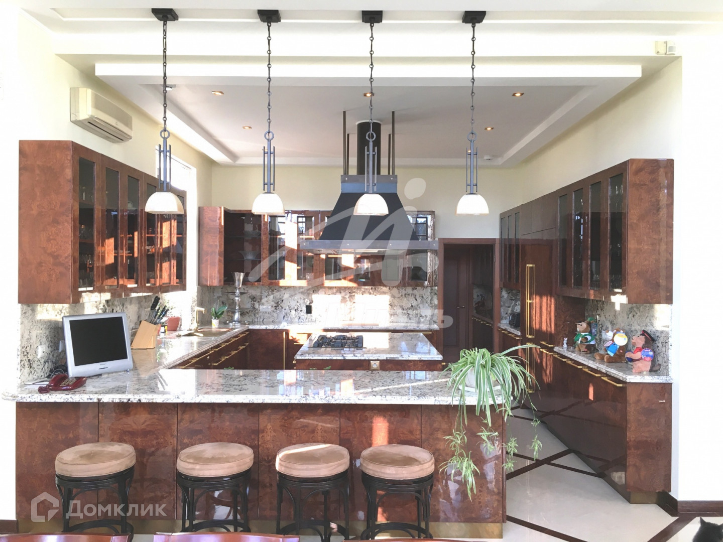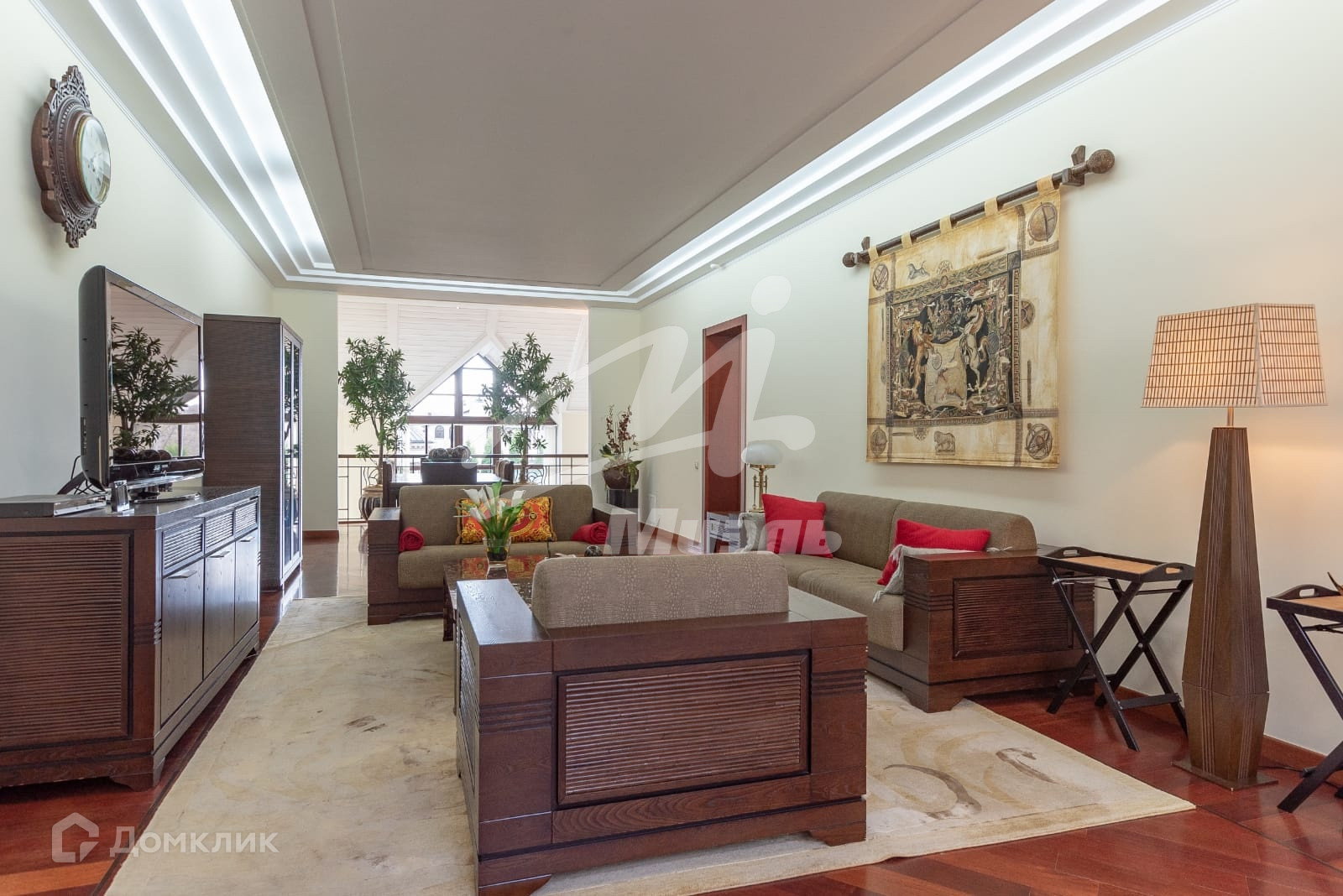Современная удобная планировка. В каждом помещении дизайн-подсветка. Полы из темно-красного африканского дерева и художественного наборного паркета.