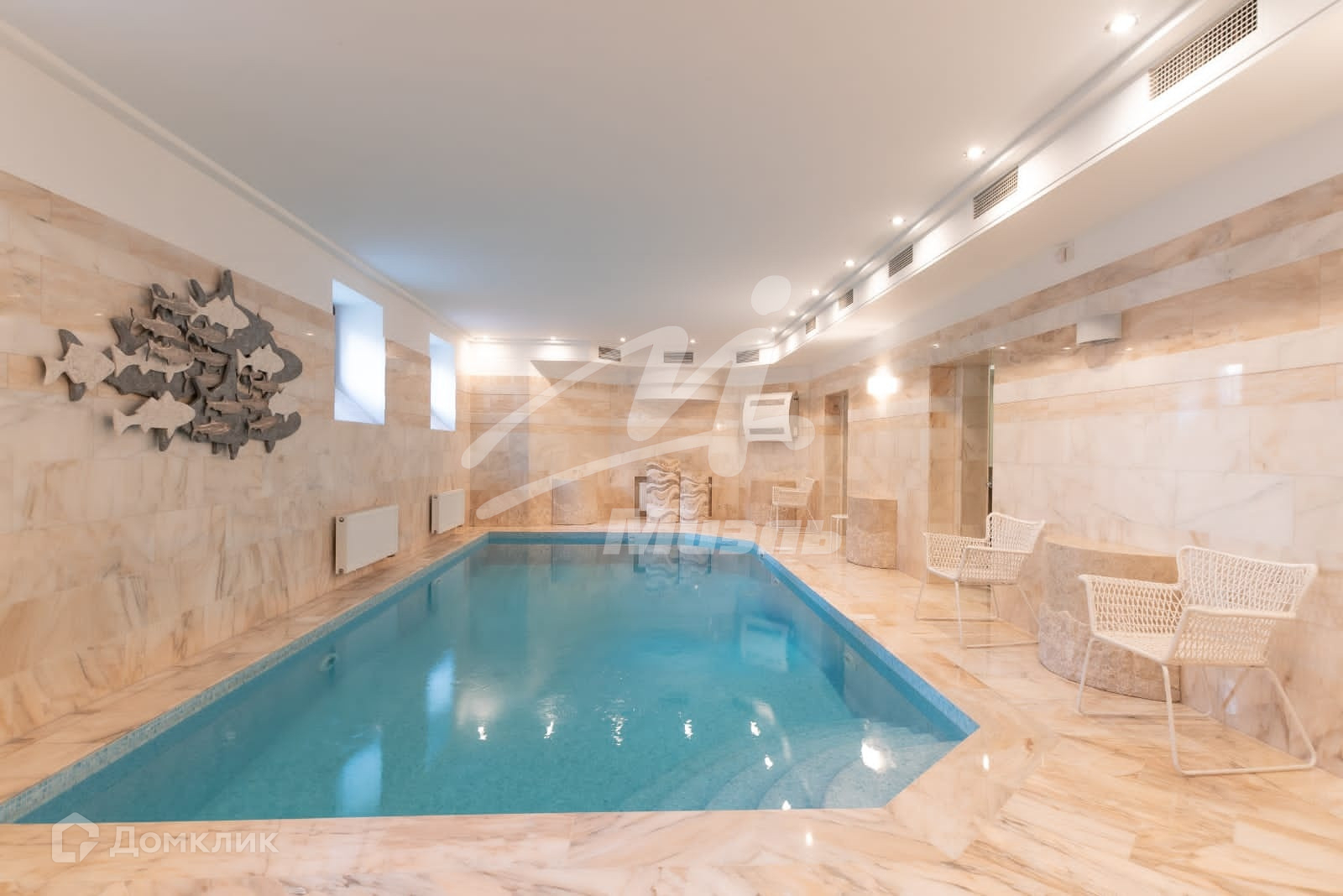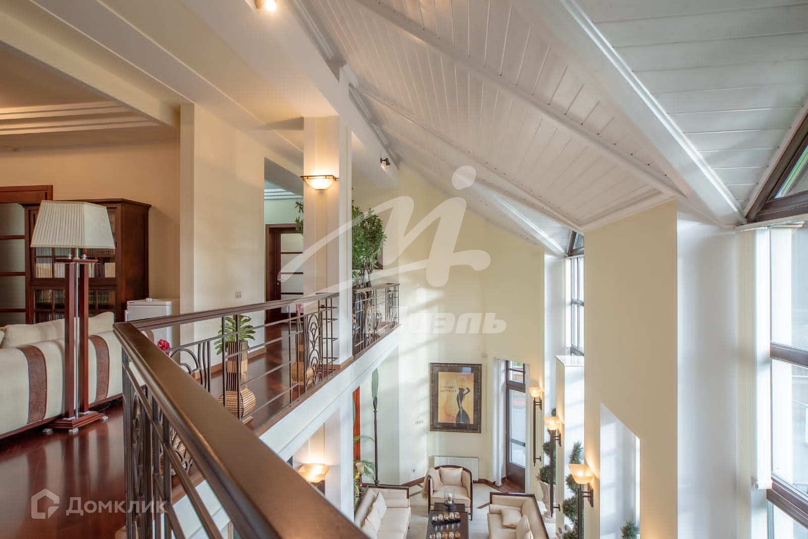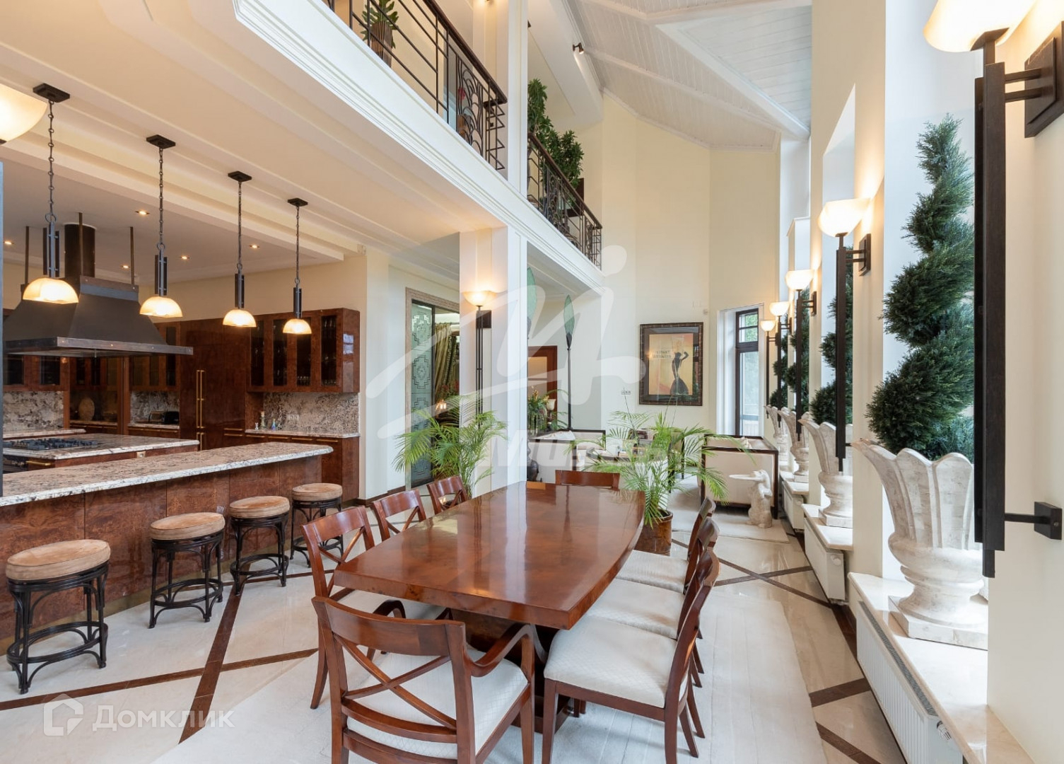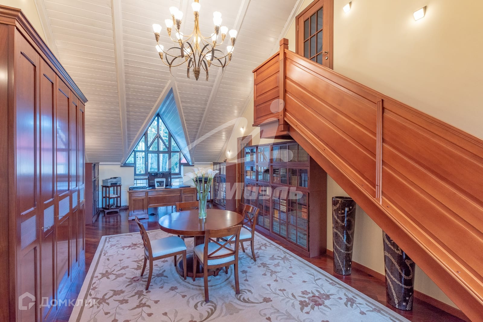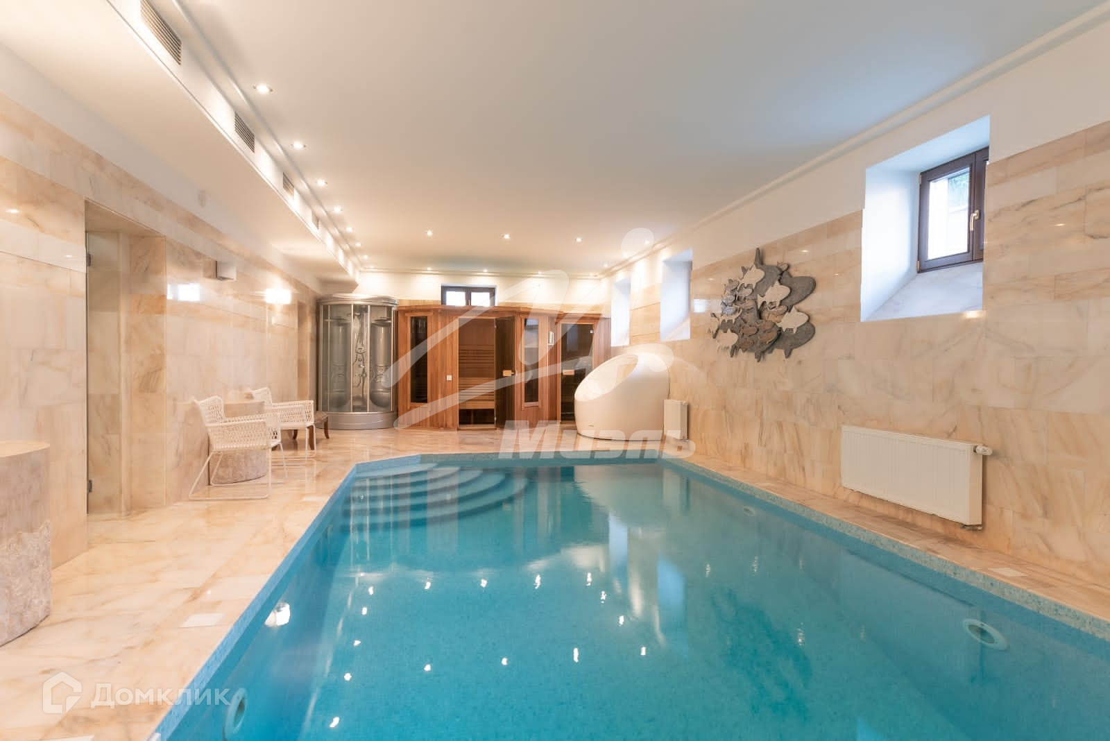 В особняке 4-х уровневый лифт, парадная лестница из розового мрамора.