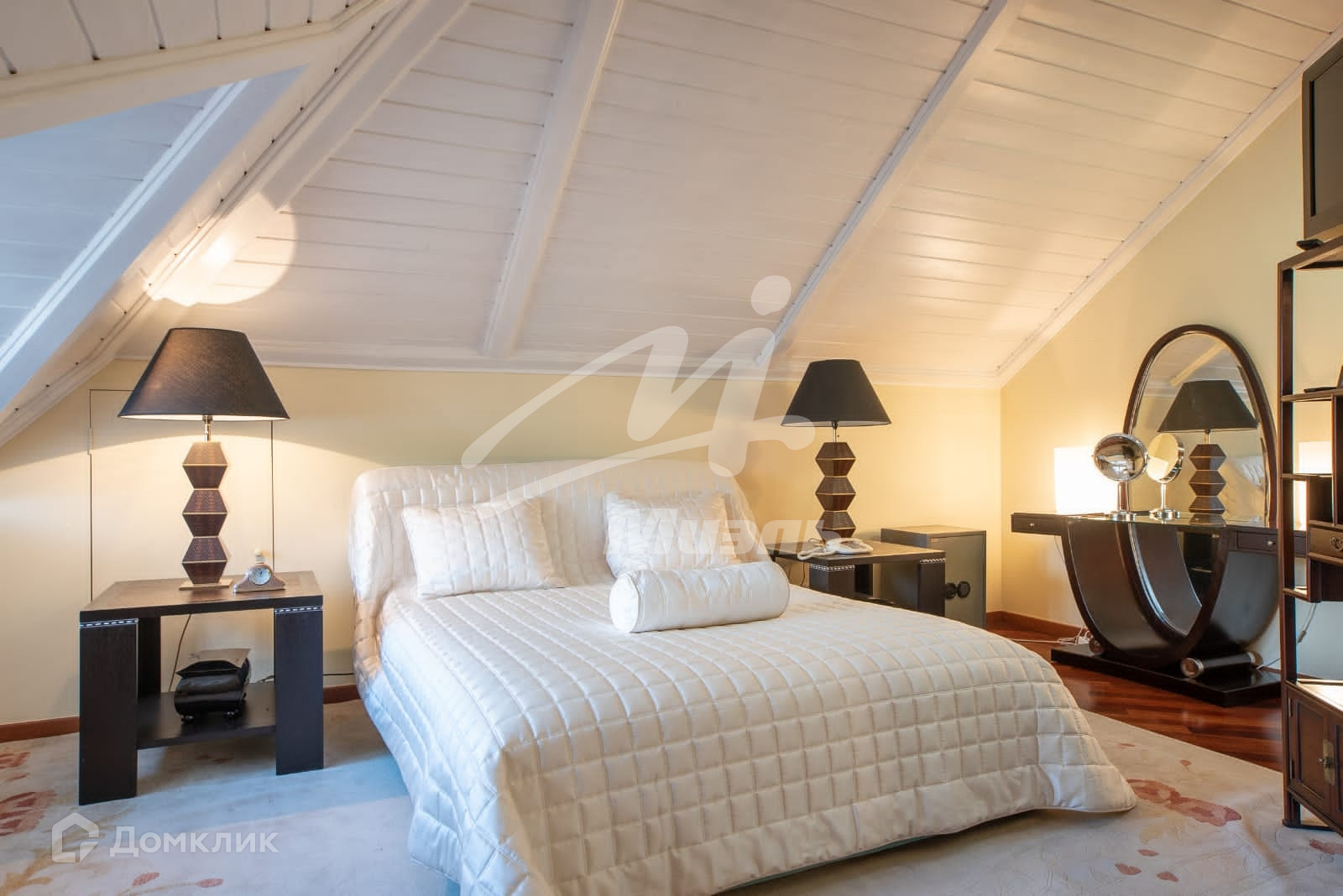 Мансарда: h - 4,85 м, холл -16, комната с балконом -44, кинотеатр -58, спальня -18 с с/у, 2 кладовые.