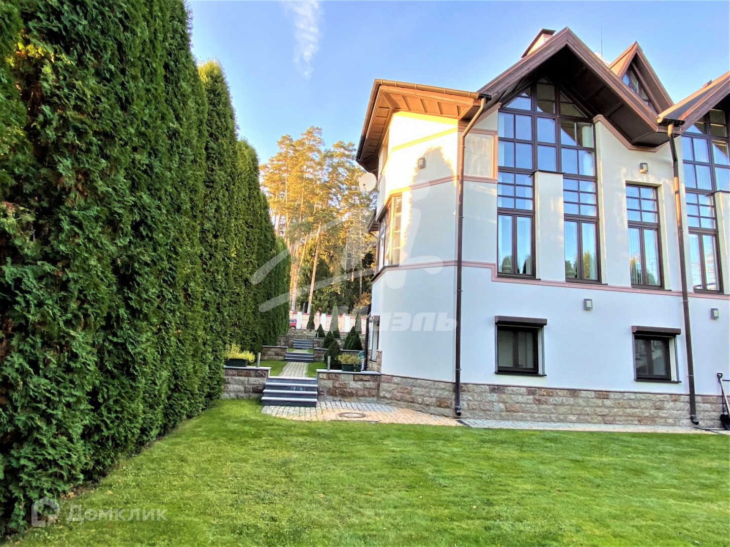 Участок огорожен прозрачным, кованным забором На участке великолепный ландшафт с подсветкой, газоны, 58 туй, стоянка на несколько а/м. Солидные соседи.