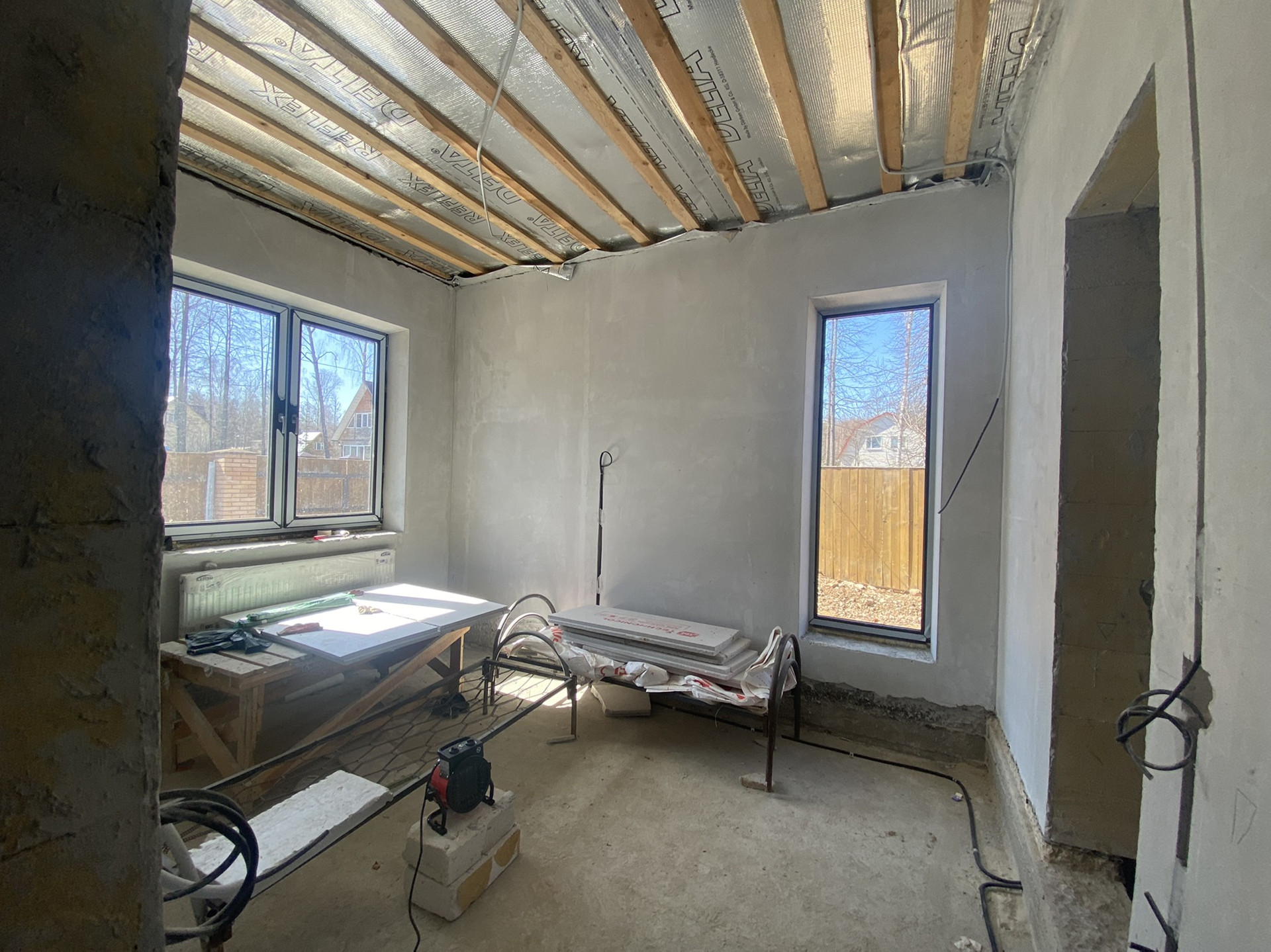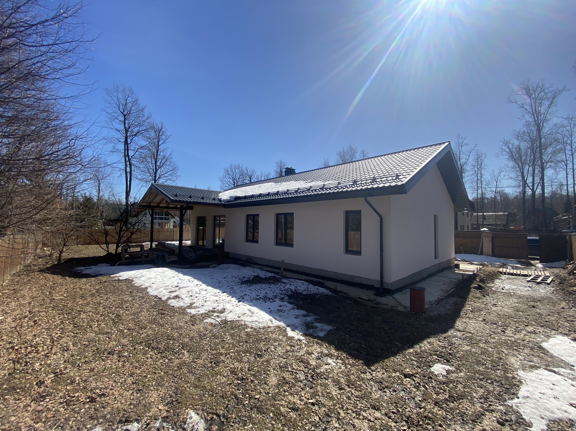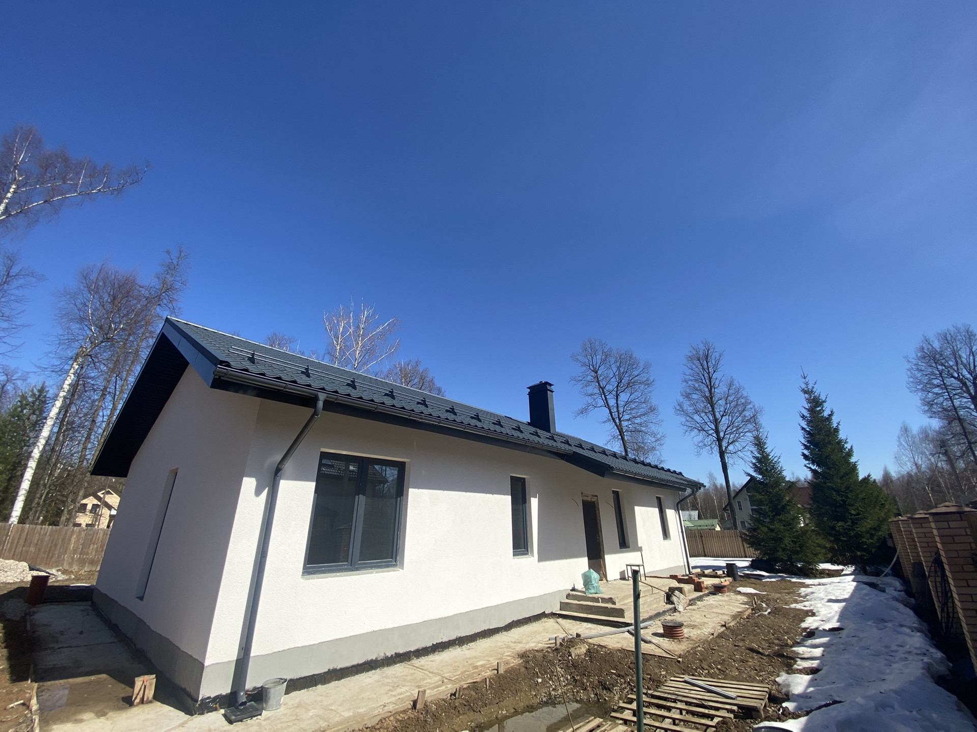 Полное уединение от шума и суеты города и дорог. Чистый хвойный воздух и тишина - залог крепкого здоровья! Посёлок окружён лиственным и хвойным лесом, малонаселенный. Огорожен по периметру забором. Заезд через два охраняемых КПП. Концепция одноэтажного дома эргономична и имеет ряд преимуществ и удобств по сравнению с 2х и более этажными домами. На участке сделана ливневая канализация, дренажные колодцы, скважина 55 м, септик Топаз. Электричество 15кВт. Газ в скором времени появится в посёлке. На участке: плодовые деревья, яблони, кусты смородины, ёлки и сосны. Дом сделан из газобетонных блоков 400 мм. Утепление изнутри. Штукатурка наружная 2 слоя. Утеплена отмостка по периметру дома. В доме произведена черновая отделка: провели электрику, канализацию, утеплена крыша, установлены радиаторы, трехслойные стеклопакеты, возведены стены, дымоходы для камина и газа. Завезены стройматериалы для утепления пола и прочие. В доме 2 санузла, 2 гардеробные, 3 спальни, кухня-гостиная. Чердак. Возможна любая форма покупки: ипотека, маткапитал, субсидии. Гарантия юридической чистоты и прозрачность правоустанавливающих документов. По запросу высылаю видео. На все вопросы отвечу по телефону. Звоните! Приезжайте на просмотр!