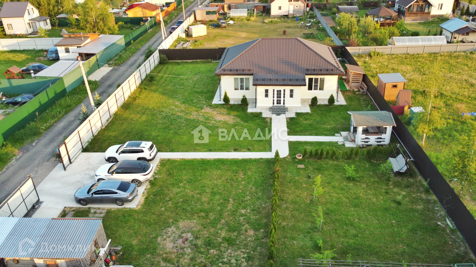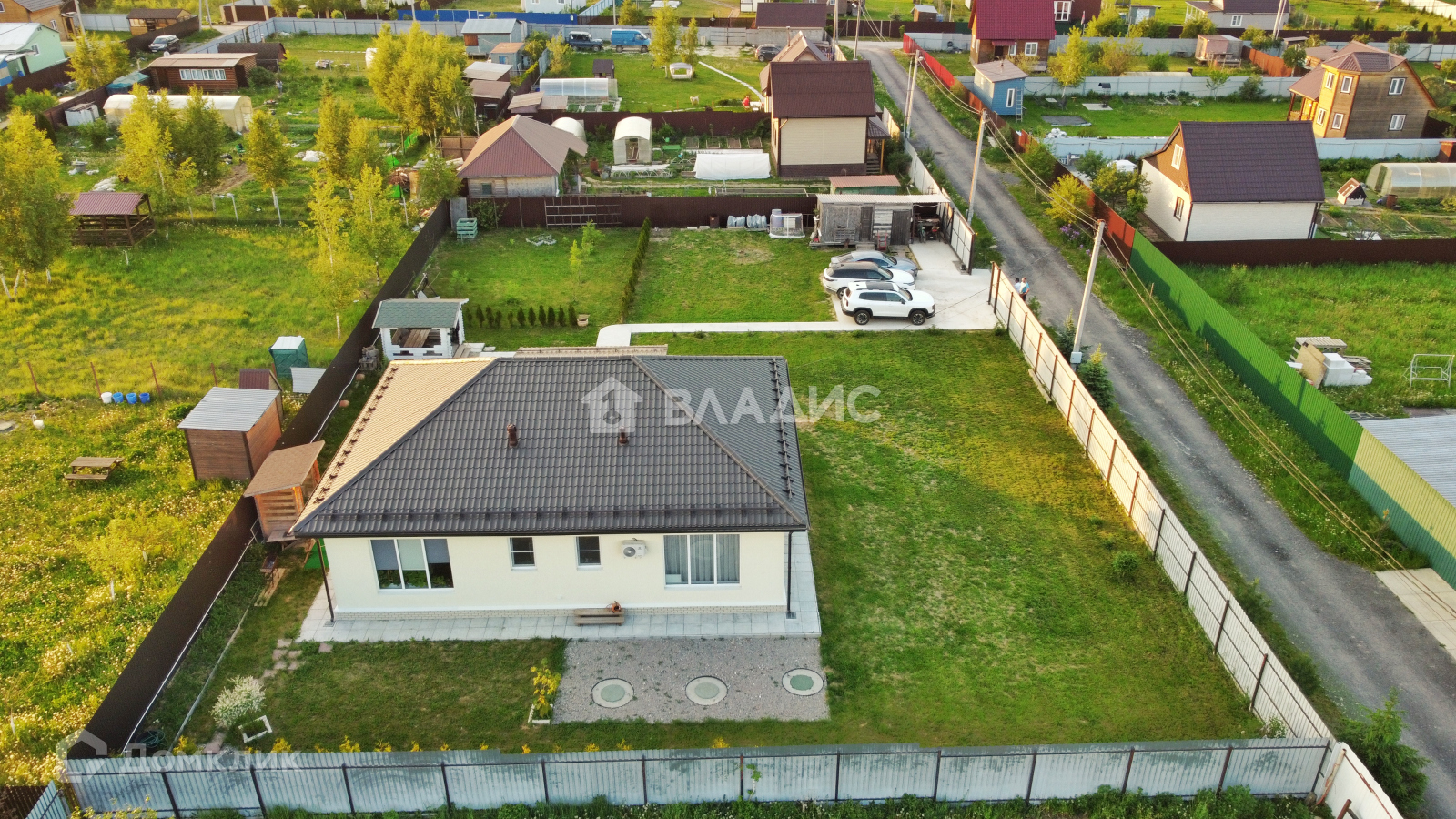 Дорога до участка отсыпана асфальтовой крошкой. По улице установлены столбы с освещением, два въезда в посёлок через шлагбаум, открывающихся с пульта или телефона.