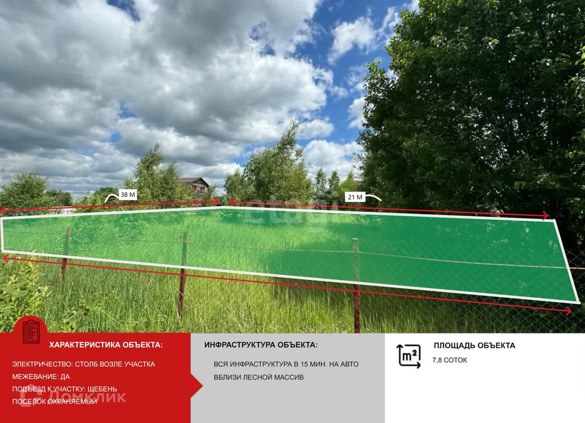 Ищите участок вблизи города? Вы его нашли! Представляю вашему вниманию участок площадью 7.8 соток, правильной формы. Сделано межевание, границы уточнены. Идеальное место для постройки дома в спокойном месте, в дали от городской суеты. Соседи построены, живут круглогодично. Посёлок охраняемый, въезд на территорию через телефонный звонок. Вся инфраструктура в 15 минутах на машине. Ходит автобус прямиком до ж/д станции "88 км". Рядом лес, для любителей собирать грибы и множество прудов. Есть возможность купить соседний участок. Остались вопросы? -Пишите, звоните!