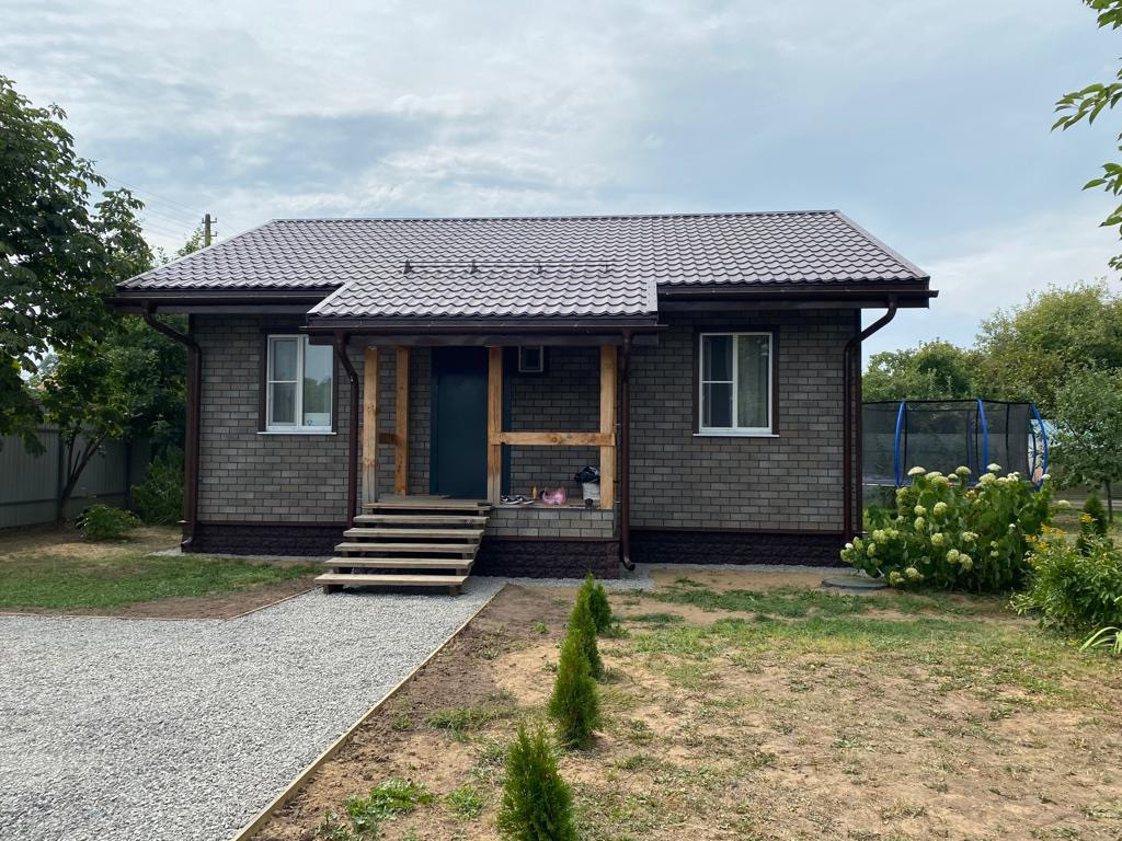 Дом 66.3, назначение Жилое, каркасный, винтовые сваи, септик топас, водоснабжение -колодец, электричество-4 кВт, утепление 200, облицовка hauberg 7800.