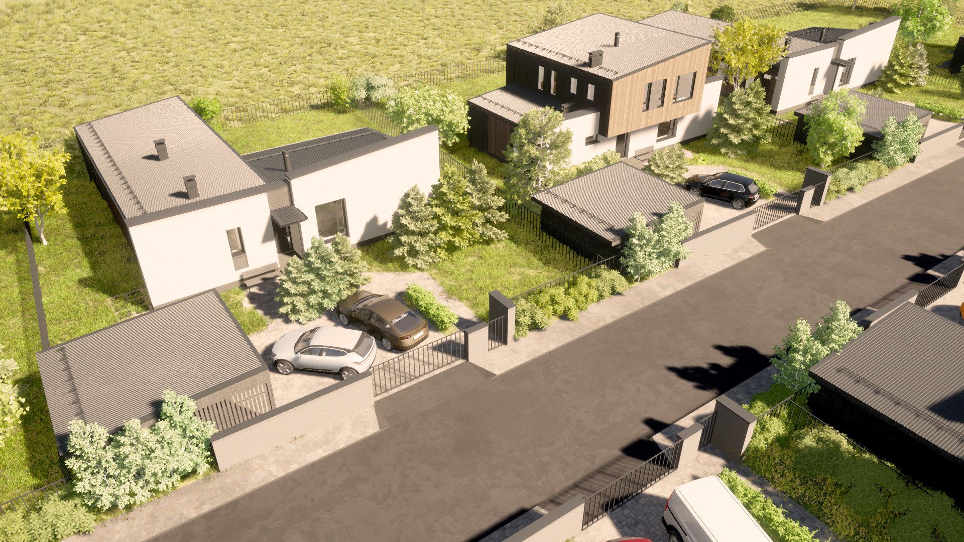 - ограждение каждого участка и территории поселка.