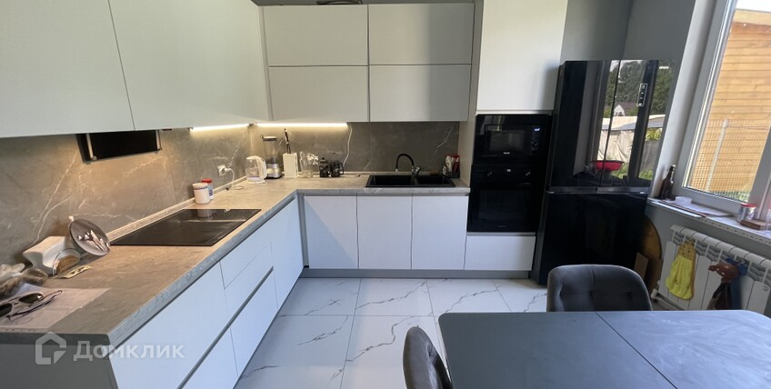В доме остаётся практически вся новая мебель и техника, в том числе кухня ЗОВ из Белоруссии со всей встроенной бытовой техникой (индукционная варочная панель, посудомоечная машинка, духовой шкаф, микроволновая печь).