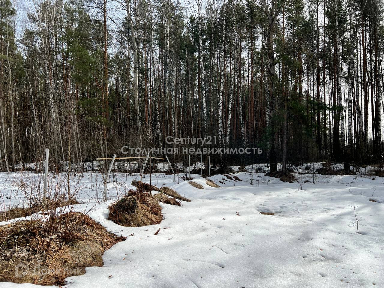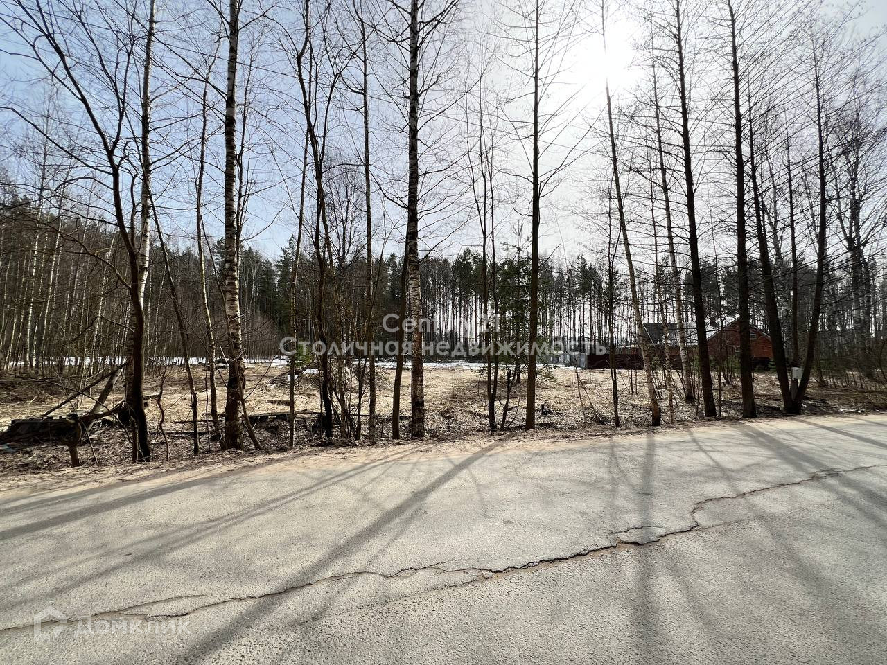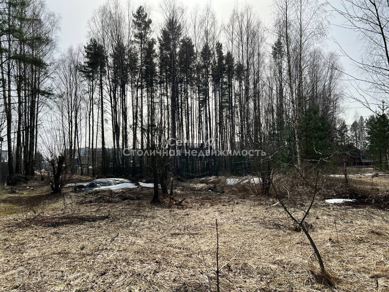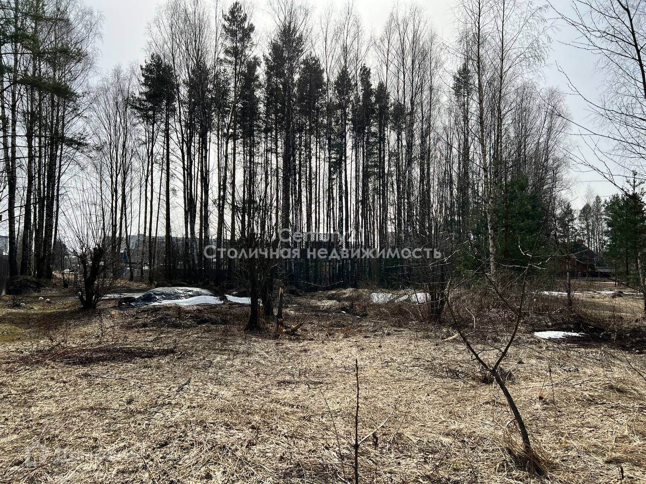 На территории участка не скапливается вода, участок сухой. Панорамный вид на лес.