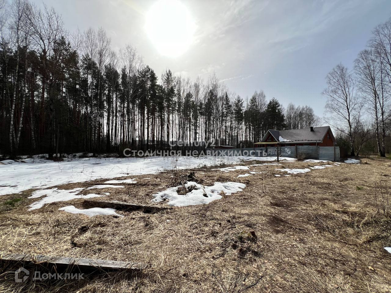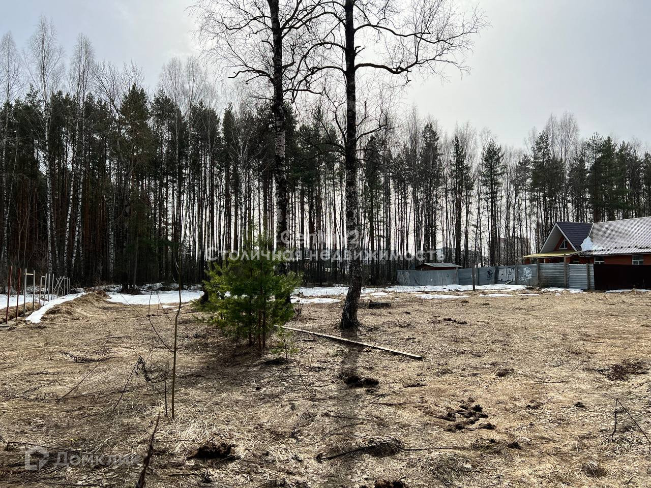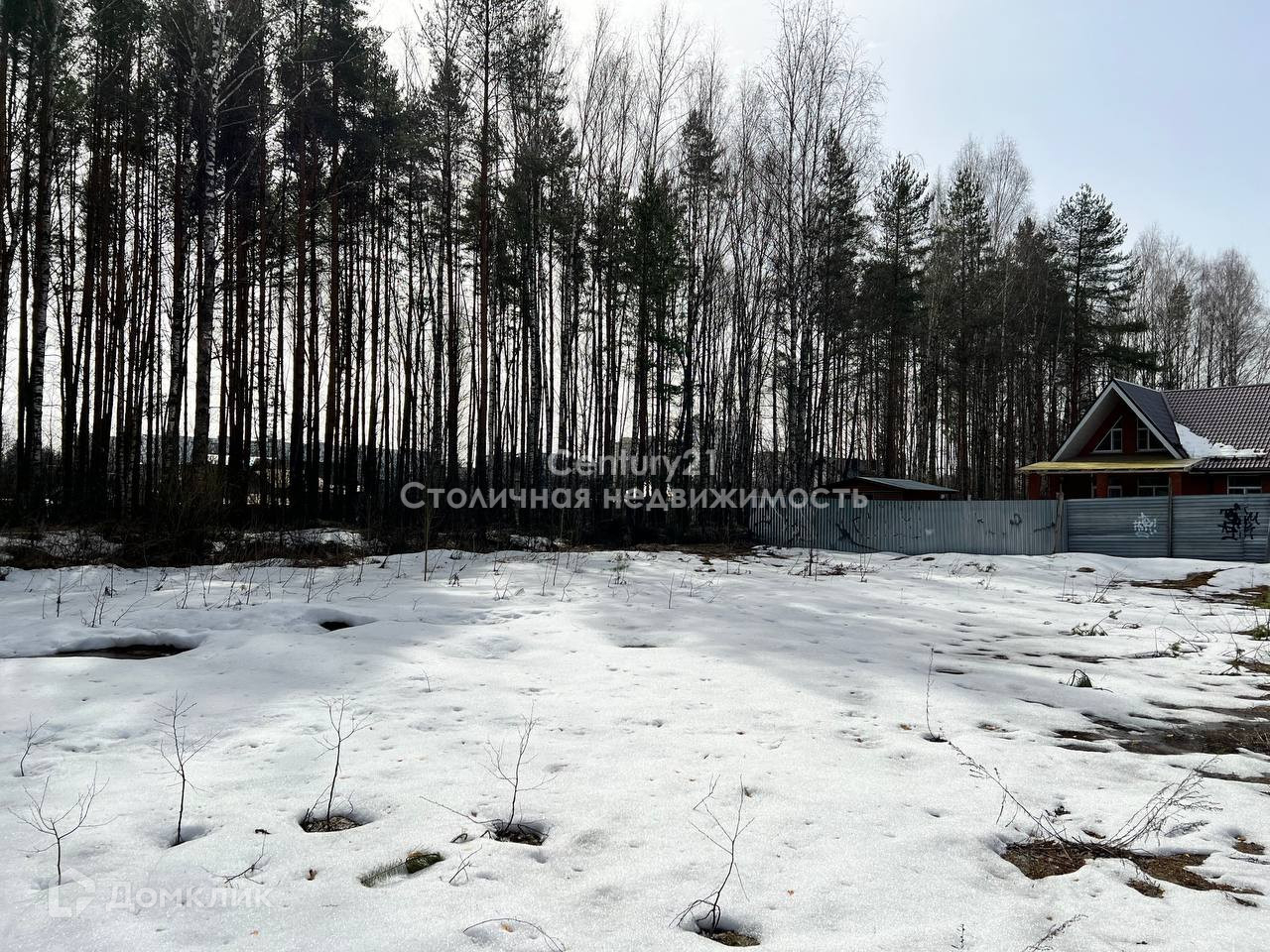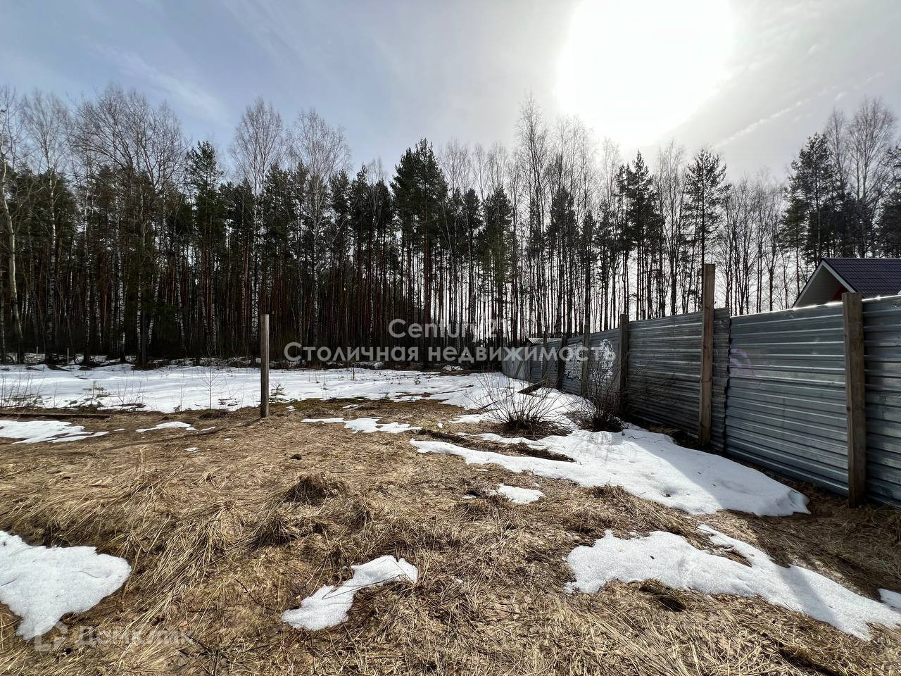 На территории участка не скапливается вода, участок сухой. Панорамный вид на лес.