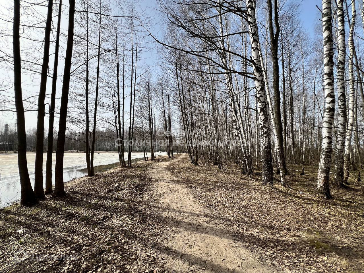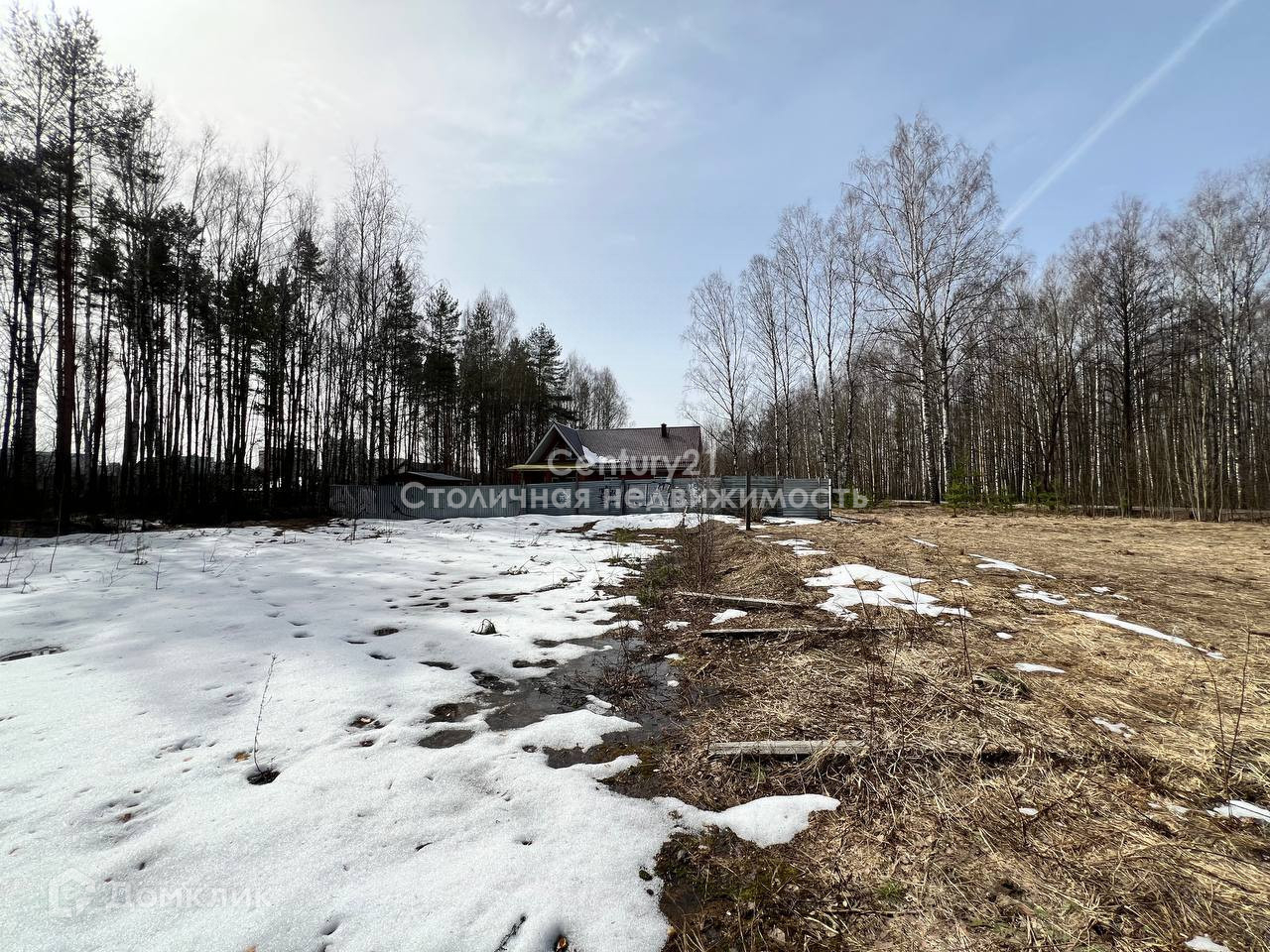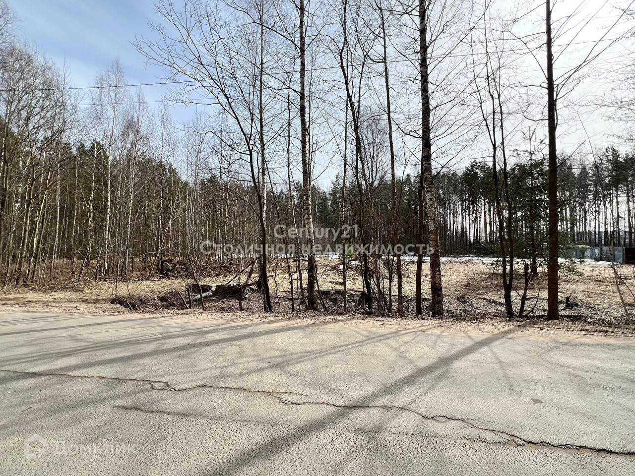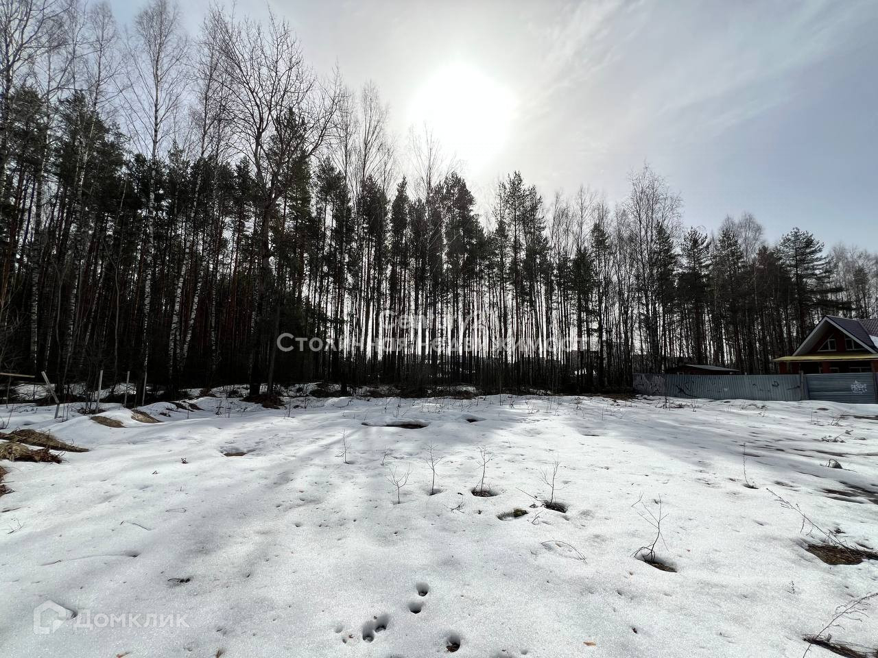 На территории участка не скапливается вода, участок сухой. Панорамный вид на лес.