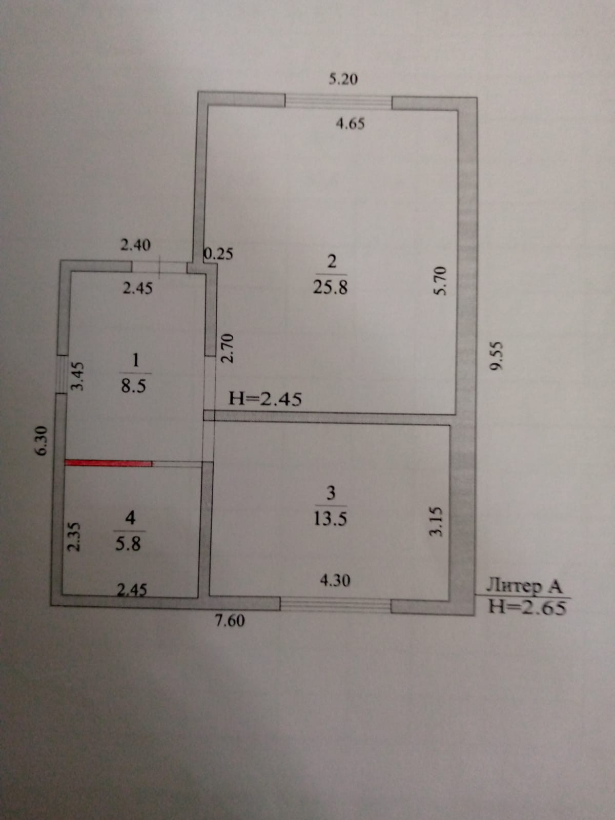 Общая площадь 53.6 м2