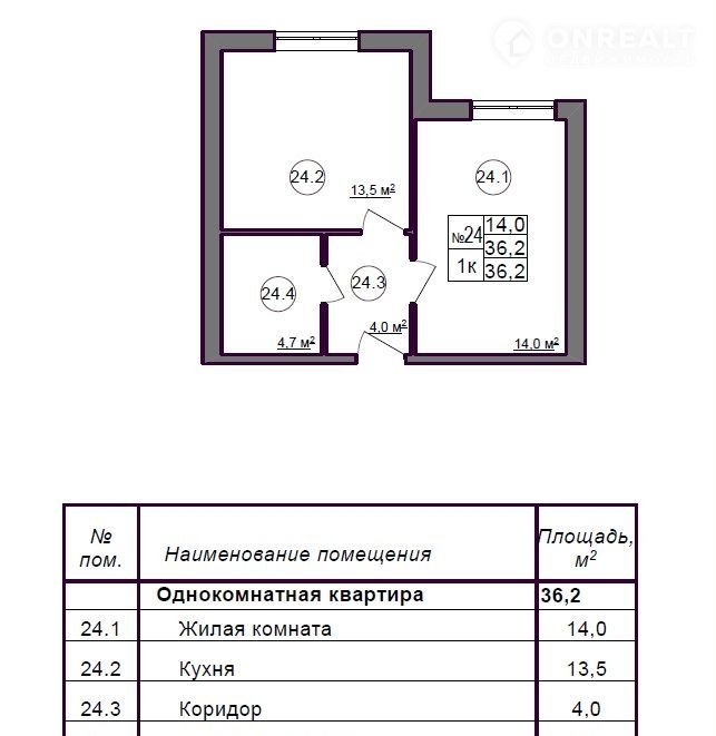 Общая площадь 36.2 м2