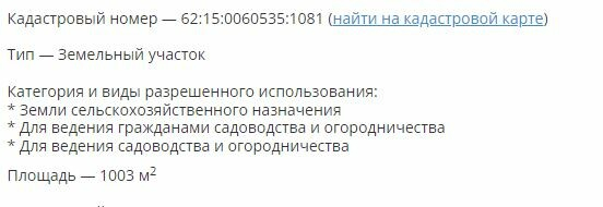 Объединен из двух участков в 2020 году, ВРИ: для ведения садоводства и огородничества.