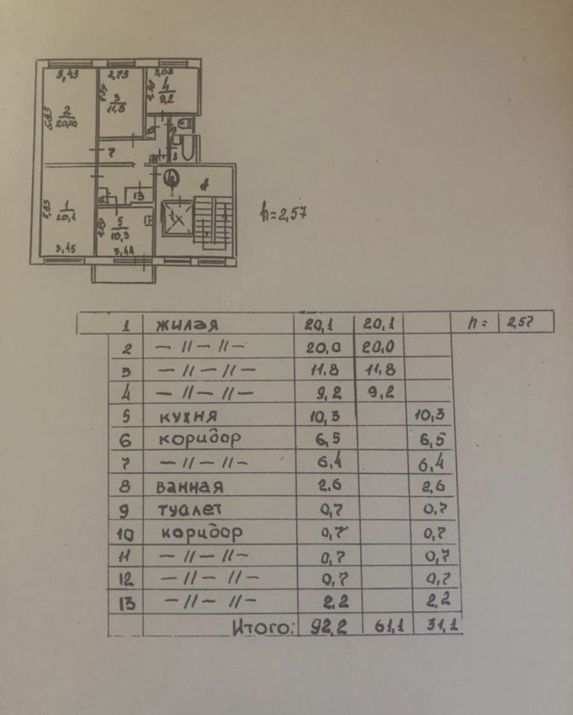 Общая площадь 92.2 м2